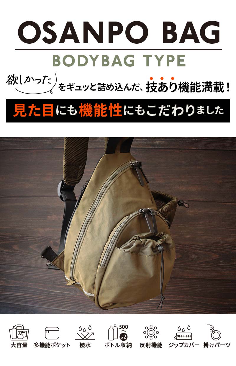 犬 お散歩バッグ 散歩バッグ ショルダー ワンショルダー ウェストポーチ 大容量 たくさん 撥水加工 反射 ペットボトルホルダー ペットボトル2本収納可 マナーポーチ 消臭 抗菌 収納ポケット きれいめ おしゃれ 軽量 SUZUKOUBOUお散歩バッグ BAISC【ボディバッグタイプ】
