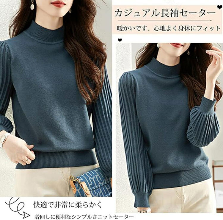 タートルネックセーター レディース ニット 秋 冬 リブ プリーツ 長袖 トップス カットソー 無地 おしゃれ エレガント 着回し 保温 柔らか ストレッチ 二の腕カバー おしゃれ 可愛いカジュアル 通勤 上品 カジュアル おしゃれ