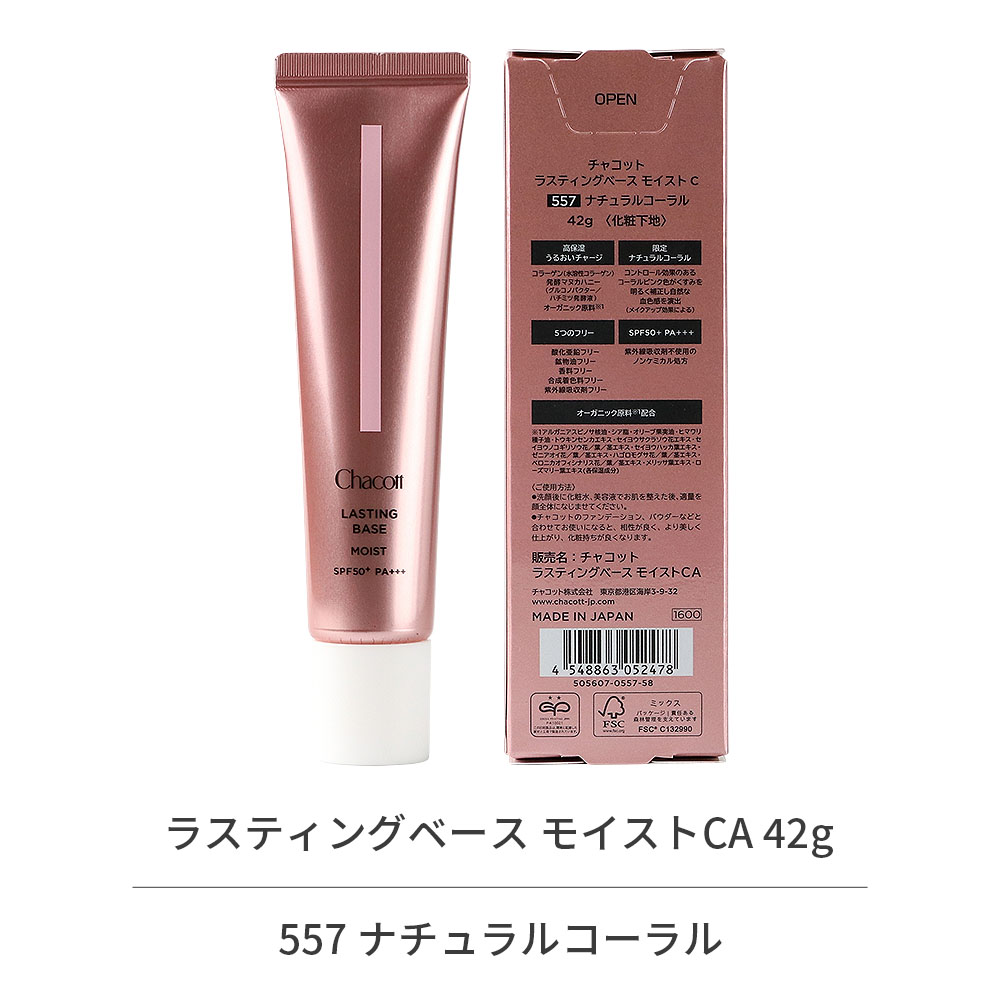 Chacott チャコット ラスティングベース 化粧下地 42g SPF50+ PA+++ 選べる2タイプ 550ナチュラル モイストCA 557 ナチュラルコーラル くすみ補正 カラーコントロール ノンケミカル