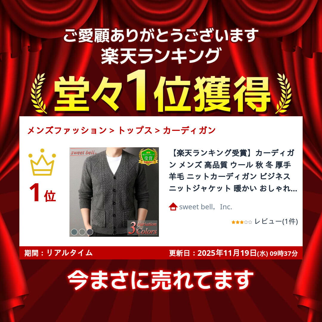 ■サイズ (約 cm) S:着丈68・胸囲98・肩幅43・袖丈59 M:着丈69・胸囲102・肩幅44・袖丈60 L:着丈70・胸囲106・肩幅45・袖丈61 2L(XL):着丈71・胸囲110・肩幅46・袖丈62 3L(2XL):着丈72・胸囲114・肩幅48・袖丈63 ※サイズ交換は「お問合せフォーム」から受付け ■素材:ウール100% ※吸湿性や放湿性が高く「保温性に優れた」素材 ※上質素材を使用したハイクオリティーModel ■仕様:定番人気の「前開き」スタイルを採用 ※40・50代の方へも高い支持を受けた人気シリーズ ※デザイン・機能性を重視した当店自慢のスペック ■サイズ規格に関しまして ※普段ご試着される服とサイズ表を比較して下さい。 ■商品イメージに関しまして ※平置き実寸計測に付きまして若干の誤差がある場合がございます。 ※撮影時の照明やPC設定・環境によるカラ—の差異がございます。 40代 50代 60代にも好評デザイン「高品質な上級モデル」カーディガン メンズ ニットカーディガン ウール100% 厚手 春 秋 冬 ビジネス カジュアル おしゃれ 大きいサイズも充実平置き実寸 (cm) S:着丈68・胸囲98・肩幅43・袖丈59 M:着丈69・胸囲102・肩幅44・袖丈60 L:着丈70・胸囲106・肩幅45・袖丈61 2L(XL):着丈71・胸囲110・肩幅46・袖丈62 3L(2XL):着丈72・胸囲114・肩幅48・袖丈63 ※サイズ交換は「お問合せフォーム」から受付け ■素材:ウール100% ※吸湿性や放湿性が高く「保温性に優れた」素材 ※上質素材を使用したハイクオリティーModel ■仕様:定番人気の「前開き」スタイルを採用 ※40・50代の方へも高い支持を受けた人気シリーズ ※デザイン・機能性を重視した当店自慢のスペック