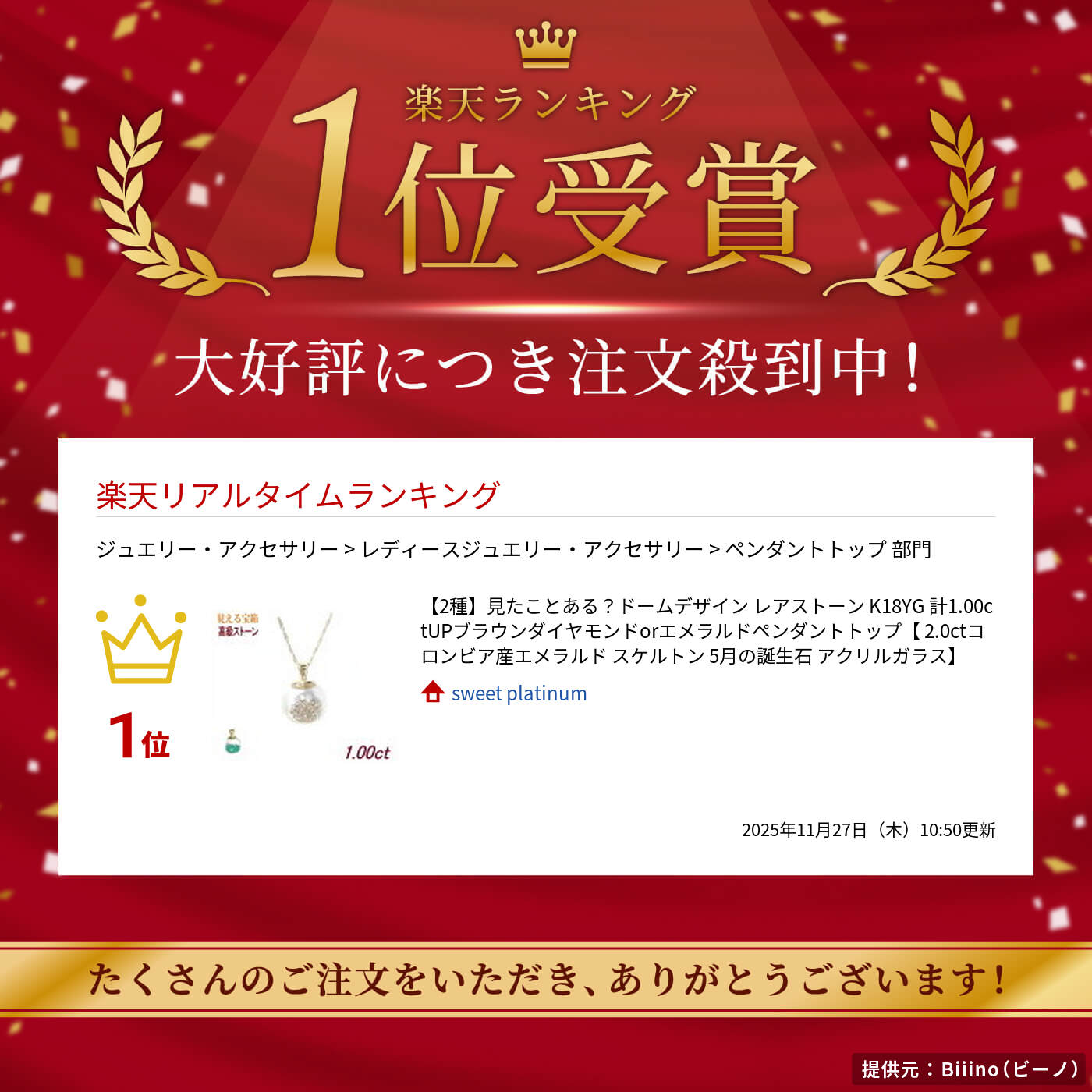 【2種】見たことある?ドームデザイン レアストーン K18YG 計1.00ctUPブラウンダイヤモンドorエメラルドペンダントトップ【 2.0ctコロンビア産エメラルド スケルトン 5月の誕生石 アクリルガラス】