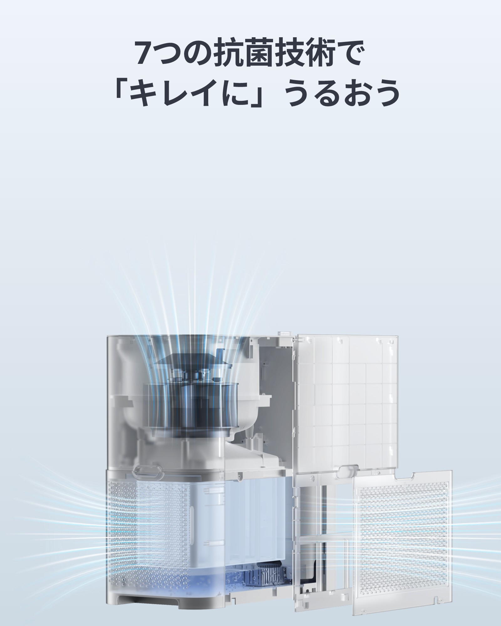 メーカー希望小売価格はメーカーサイトに基づいて掲載しています 製品仕様本体サイズ:380x200x402.5mm 本体重量:5.8kg 適用床面積 :和室21m²(13畳)、洋室35m²(21畳) 電源:AC100~240V、50/60Hz 容量:4.5L 調節可能なモード:AUTOモード 、マニュアルモー: 強、中、弱 通信方式:WiFi+Bluetooth Low Energy 4.2以上 対応OS :OS 14.0+、Android OS 5.0+、watchOS 4.0+お勧めポイント【パワフル加湿&省エネ】 SwitchBotスマート加湿器は水が自然に蒸発する「気化式」を採用し、過剰な加湿を防ぎます。750ml/hの加湿量で、21畳のリビングをムラなく加湿できます。消費電力は約15Wで、省エネ設計なので1日中使用しても経済的です。また、ヒーターを使わず送風だけで加湿するため、消費電力が少なくて電気代も抑えられます。 【7つの抗菌技術で清潔なうるおいをキープ】 気化式のため、水の粒子が非常に小さく、菌の拡散を防ぎます。抗菌加工素材とAg+抗菌加工により、菌の繁殖と長時間の残存を抑えます。そして、外部からのほこりや異物の混入を防止する空気フィルターや、直接水に浸からず菌やカビが繁殖しにくい宙吊り式フィルターを採用しています。さらに、フィルター自動乾燥技術でカビの繁殖を防止します。これらの優れた抗菌技術により、空気が「キレイ」にうるおう環境を実現します。 【動作音18dB以下の「おやすみモード」】 就寝時におやすみモードをONにすると、表示ランプが消えて18dBの静かな加湿が行われます。乾燥で朝起きた時の喉の不調やお肌のカサカサが気になる方へ。 【お手入れのしやすさ抜群でいつでも清潔】 SwitchBotスマート加湿器は、ドライバーなどを使わずに分解して丸洗い可能です。加湿フィルターは洗濯機でそのまま洗えますので、いつも清潔にお使いいただけます。 【大容量タンク&2WAY給水】 水タンクは4.5Lの大容量で、一回の給水で1日中運転可能です。1日8時間使用する場合、給水は3日に一度でOK。透明な設計で蓋を開けて水の残量を確認する必要もありません。水がなくなると、アプリからアラート通知が届きます。水の追加はタンクの蓋を開けて上から水を注ぐだけ。タンクを取り外して給水することも可能です。どなたでも手間なく楽々給水できます。 【アプリや音声で加湿器を操作可能】 スマートスピーカーと連動すると、音声コマンドで操作可能。乾燥が気になる冬の夜、暖かい布団やこたつから出たり、スマホを探したりする必要はありません。また、いつでもどこでもアプリで加湿器の運転状況を把握したり操作したりすることができます。帰宅時間に合わせて予約運転を設定しておけば、快適な湿度に調整されたお部屋に帰れます。つけっぱなしで外出してしまった!という時も、遠隔操作でオフにできます。さらに、タイマー機能を利用して電気代も節約可能です。 【安全を第一に考えた保護機能】 空焚き防止機能や転倒時の緊急OFF機能で、加湿器が倒されたり水残量が無くなったりした時は電源が自動でOFFに。また、チャイルドロック機能でお子さまによるいたずらや誤操作を防止します。子供やペットのいるご家庭にも安心にご使用いただけます。色本体:ホワイト/タンク:水色材質給水タンク:GPPS 本体&蓋:PPBluetooth4.2以上対応OSAndroid 4.3+, iOS 10.0+, watchOS 1.0+使用環境屋内のみ;5°C~40°C / 5-95%RHサードパーティーAlexa/Google/Siri/IFTTT/SmartThings/API保証期間ご購入日から1年間