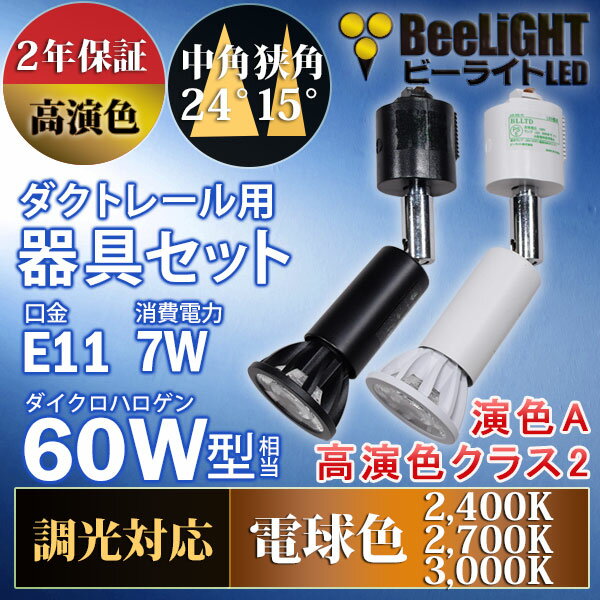 【即納】【ダクトレール用スポットライト器具セット】LED電球 E11【高演色 クラス2】【演色A】高演色Ra92 フリッカーフリー 調光器対応 ハロゲンランプ 中角24° 狭角15° 電球色 7W(60W相当) + AR-RB-(W/B)【2年保証】