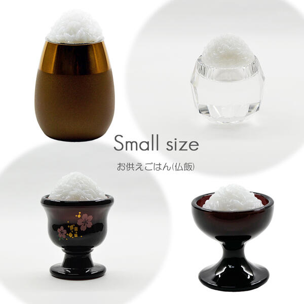 「施設」や「寮」など、 どうしても炊飯ができない環境、 でも気持ちはお供えしたい・・・ まるで炊立てのような、艶やかな白いごはん リアルなお供え仏飯を演出してくれます。 商品説明カラーホワイト サイズごはん/高さ1.8cm×幅3.5cm底 軸/高さ0.4cm×幅2.3cm (全高/2.2cm) 材質 PVC(ポリ塩化ビニル) 備考 ※こちらの商品は食べられません。 お届け方法【レターパックプラス対応商品】郵便局のレターパックプラスで配送出来ます。・日時指定はご利用頂けません。 ・お荷物の追跡が可能です。・レターパックプラスは対面(玄関渡し)で配送してくれる安心のサービスです。 ・レターパックプラスでの配送を希望される場合は、ご注文手続き画面で配送方法レターパックプラスをご選択下さい。 ※詳しくはお買い物ガイドをご覧下さい。