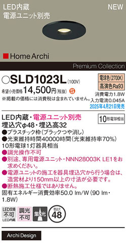 パナソニック「SLD1023L」LEDダウンライト/▼電源ユニット別売電球色/埋込穴48パイ<LED交換不可/調光不可/要工事/LED照明