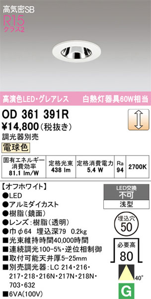 OD361391R オーデリック ダウ...