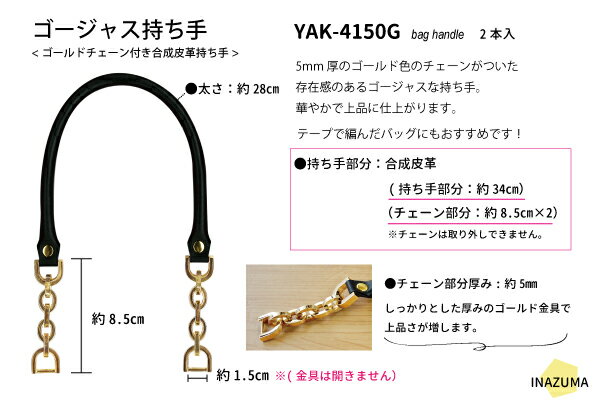 ★厚み3cmゆうパケット便OK★イナズマ社製持ち手【YAK-4150G】【合成皮革】【5色】【金具:ゴールド】