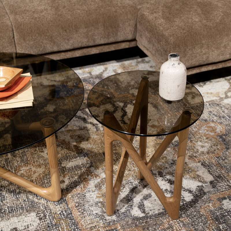 Zuiver (Dutch Bone) サイドテーブル ガラス 北欧 幅40cm 高さ50cm オーク ローテーブル ブラウン 丸 円形 リビングテーブル ラウンドテーブル 円 ナイトテーブル ジャパンディ NAIA SIDE TABLE