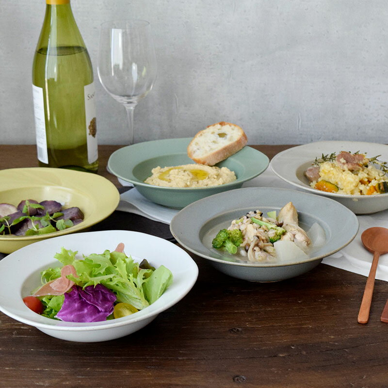 商品説明 「コリーヌ」シリーズのスープ皿。 マットな質感とカラーがいつもの食卓も洗練された印象に。 たわみのあるナチュラルな表情が魅力。 どんなお料理も引き立ててくれる温かみのある器です。 均一な色・形ではなく、あえて歪みやムラを出したことにより一つずつ表情が異なる良さを愉しんでいただく器です。 こちらは具だくさんのスープに最適なサイズ。シチューとも相性抜群です。そのほか、家族分の煮物鉢としても。 商品詳細 サイズ/口径20×高さ4.9cm 重さ/約392g(商品により誤差があります) 容量/約570cc(満水) 素材/陶器 質感/マット(ホワイトのみつややか) 生産地/日本(美濃焼) 電子レンジ、食器洗い機使用可 オーブン(直火)不可 取り寄せ可能 ※サイズは全て外寸になります。 ※不明な点がございましたら、お気軽にお問い合わせ下さい。 ご注意 ※ご注文前に商品の特性・当店の検品基準をご確認ください。 ※縁のラインを意図的に歪ませた商品となります。 ※入荷毎に色味が多少異なります。 ※釉薬の垂れ・濃淡・剥げ等が見られる商品です。 ※赤土の素地のため全体に鉄粉が入っています。 ※縁の錆色の出方に個体差がございます。 ※裏印部分に色飛びが見られる場合がございます。 ※一つずつ色や形状に個体差がある商品ですので、予めご了承の上ご購入くださいませ。均一性を求められるお客様はご注意ください。 ※お客様のお使いのモニター設定、お部屋の照明等により実際の商品と色味が異なって見える場合がございます。 ※不明な点がございましたら、お気軽にお問い合わせ下さい。 EAST table(イーストテーブル)のボウル EAST table(イーストテーブル)(旧:テーブルウェア イースト)で販売中の洋食器のボウルは、陶磁器の生産シェア日本一を誇る、岐阜県土岐市をはじめとする「美濃焼」を中心に取り扱っています。 (各商品の産地は各商品詳細をご覧ください。) 全国各地に陶器の産地がありますが、美濃焼きはバリエーション豊かな作風が特徴で、伝統的な織部や志野を始め、今人気の波佐見焼きや北欧食器に負けないモダンなものまで製作しており、それらを卸問屋を通さず産地直送で格安で販売しています。 当店で「洋食器」と括っている食器は「外国産の食器」ということではなく、ホテルや洋食レストランの業務用としてや、洋風のメニューや用途を想定して製作された器を指します。 その為、形状は和食器で北欧風など洋風の柄を施したものや、フラットな洋食器の形状で和の釉薬を使ったものなどがあり、それらは和食洋食問わず使えるものが多いです。 素材は磁器が中心ですが陶器製やガラス製も。 【大きめサイズのボウル】 多人数用のおかずの盛鉢や、パスタボウル、カレーボウルとして、食卓の主役を飾る洋食器の大鉢。 おもてなしのシーンでは、パーティボウルとして活躍してくれます。 【中サイズのボウル】 サラダボウル、一品料理の副菜鉢や煮物鉢、フルーツボウルなど、サブメニューの盛り付けにぴったりな洋食器の中鉢。 どんぶりやお茶漬け茶碗として使えば、和食も洋風にコーディネートもできます。 【小さめサイズのボウル】 シリアルボウル、ヨーグルトボウル、アイスボウル、デザートボウルなど、一品物を盛るのにちょうどいい洋食器の小鉢。 スープボウルや、カフェオレボウルにしてもOK。 プリンやゼリー用のデザートカップなどにしてもいいですね。 鍋料理など、汁気のあるメニューの取り鉢としてもご使用いただけます。 EAST table(イーストテーブル)(旧:テーブルウェア イースト)では、シンプルなホワイト・シックなブラック、カラフルなブルーやグレー・イエローやブラウンなど豊富に取り揃えております。 デザインもホテル食器のようなスタイリッシュなものから北欧風のカフェ食器のようなおしゃれなボウル、カジュアルな絵柄の入ったものなど数多くあり、お好みに合わせてお選びください。リムスープ皿 20cm リムプレート 20cm リムプレート 23cm 送料無料 食器セット コリーヌ
