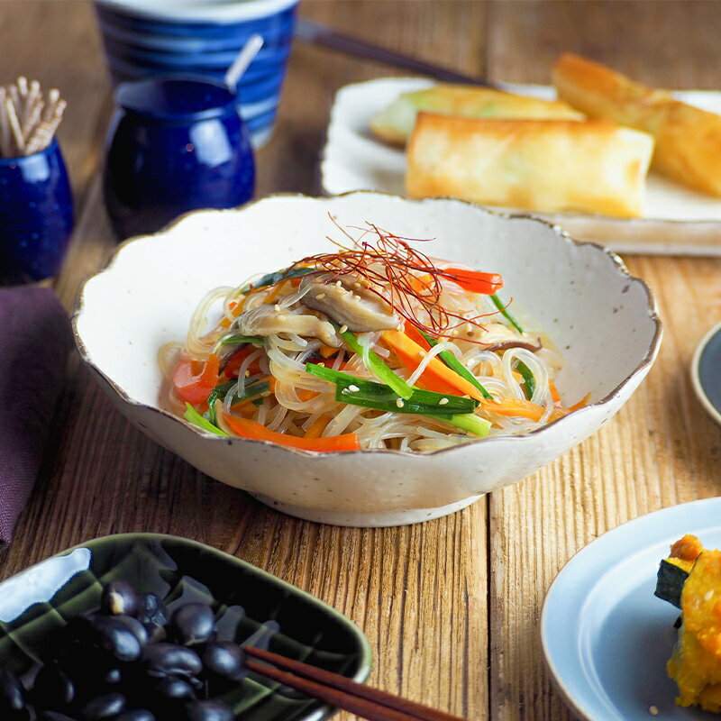 商品説明 あたたかみある色合いの白化粧とお花が咲いたような菊型の和食器。 縁はフリルのようで優しい雰囲気ですが、縁の錆色が料理を引き締めてきれます。 どんな料理にも合わせやすく、煮物はもちろん洋風、アジアン料理を盛りつけても素敵。 サラダボウル、フルーツボウル、菓子鉢などにも活用できますよ。 深さも十分ありますので、汁ものでもしっかり盛りつけることができ、盛り鉢としても使いやすく普段使いの器におすすめ。 商品詳細 サイズ/直径17×高さ5cm 重さ/約274g(商品により誤差があります) 容量/約425cc 質感/マット 素材/磁器 生産地/日本(美濃焼) 電子レンジ、食器洗い機使用可 オーブン(直火)不可 ※サイズは全て外寸になります。 ご注意 ※ご注文前に商品の特性・当店の検品基準をご確認ください。 ※全体に鉄粉(茶色の点)が入ったデザインで、入り方には個体差がございます。 ※縁の錆色に濃淡が見られます。 ※お客様のお使いのモニター設定、お部屋の照明等により実際の商品と色味が異なって見える場合がございます。 ※白化粧につきましては白い結晶・茶色い模様の出具合、凹凸具合に個体差がございます。手作業での施釉の風合いとしてお楽しみください。 ※画像に含まれる小物は使用イメージのために使用しています。 テーブルウェアイーストの和食器 和食器というと、瀬戸物、焼き物、陶器という総称で一般的に呼ばれています。 テーブルウェアイーストで販売中の和食器は、陶磁器の生産シェア日本一を誇る、岐阜県土岐市をはじめとする「美濃焼」が中心です。 全国各地に陶器の産地がありますが、美濃焼きはバリエーション豊かな作風が特徴で、伝統的な織部や志野を始め、今人気の波佐見焼きや北欧食器に負けないモダンなものまで製作しており、それらを卸問屋を通さず産地直送で格安で販売しています。 そして和食器は豊富なサイズ、形、模様が魅力。 そして、和食だけでなく洋食中華とお料理を問わず使える懐の深い器。 当店では、大皿・中皿・小皿・取り皿・カレー皿・グラタン皿、大鉢、中鉢、小鉢、お茶碗、湯呑、茶碗蒸し、箸、箸置き、急須、丼、蕎麦猪口など豊富なアイテムを取り揃えております。 【22cm?大鉢】 家族分のおかずの盛り付け、おもてなしの大皿料理に。サラダや、煮物、煮込み料理、パスタなど汁気のあるお料理の盛鉢として最適です。 【15?21cm中鉢】 取り鉢・向付・煮物鉢・サラダボウル・などに。二人分くらいまでのお料理の盛り付けが出来るサイズ。 また、一人分のパスタ皿やカレー皿としても使用出来る形です。 【9cm?14cmサイズの小鉢】 日常で一番活躍するサイズ。和え物やお浸し、冷奴などの副菜鉢や取り鉢として、一人分のサラダやシリアル、ヨーグルトボウルとしても。 また、子供用食器としても活用出来ます。 【8cm以下の小鉢】 小付(こづけ)と言われる小さな小鉢。タレやソースを入れたり、珍味を入れたり小さなおかずを入れたり、意外とあると重宝するサイズ。 菊型などの花型カラフルな色など季節感を出したり、食卓のアクセントに。 ブルーの染付けや粉引、織部や黒い食器など和食器の味わいを楽しんでください。関連商品 煮物鉢 吹墨十草 菊型 煮物鉢 白化粧 菊型 深皿 吹墨十草 菊型 深皿 白化粧 菊型 お好み丼 大 鉄粉流し 焼物皿 角皿 小鉢 菊型 小皿 菊型