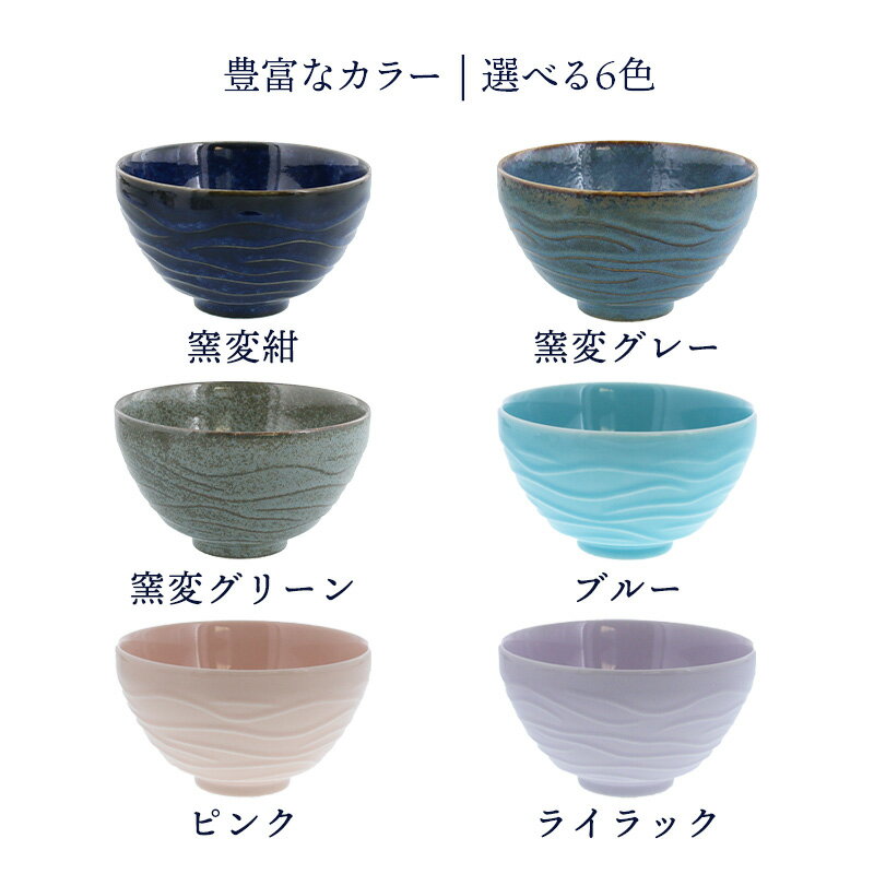 商品説明 モダンなカラーとデザインの飯碗はご飯茶碗以外にもスープボウル、おかず鉢、デザートボウルなどにも使えて便利。 深さがしっかりあるのも、いろいろな料理に対応してくれるポイント。 少し大きいサイズで家族みんなで使えるお茶碗です。 カラーも豊富なので、色違いで揃えれば、それぞれ違った雰囲気を楽しむことができますよ。 商品詳細 サイズ/直径12×高さ7cm 重さ/約223g(商品により誤差があります) 容量/約400cc 質感/つややか 素材/磁器 生産地/日本(美濃焼) 電子レンジ・食洗機可 オーブン・直火不可 ※サイズは全て外寸になります。 ご注意 ※ご注文前に商品の特性・当店の検品基準をご確認ください。 ※こちらの商品は釉薬の濃淡、垂れ跡、ハゲが見られます。 ※ピンホール(針で突いたような穴)が見られます。 ※お客様のお使いのモニター設定、お部屋の照明等により実際の商品と色味が異なって見える場合がございます。 ※画像に含まれる小物は使用イメージのために使用しています。 テーブルウェアイーストの和食器 和食器というと、瀬戸物、焼き物、陶器という総称で一般的に呼ばれています。 テーブルウェアイーストで販売中の和食器は、陶磁器の生産シェア日本一を誇る、岐阜県土岐市をはじめとする「美濃焼」を中心に取り扱っています。 (各商品の産地は各商品詳細をご覧ください。) 全国各地に陶器の産地がありますが、美濃焼きはバリエーション豊かな作風が特徴で、伝統的な織部や志野を始め、今人気の波佐見焼きや北欧食器に負けないモダンなものまで製作しており、それらを卸問屋を通さず産地直送で格安で販売しています。 そして和食器は豊富なサイズ、形、模様が魅力。 そして、和食だけでなく洋食中華とお料理を問わず使える懐の深い器。 当店では、大皿・中皿・小皿・取り皿・カレー皿・グラタン皿、大鉢、中鉢、小鉢、お茶碗、湯呑、茶碗蒸し、箸、箸置き、急須、丼、蕎麦猪口など豊富なアイテムを取り揃えております。 ご飯茶碗は飯碗、お茶碗、茶碗、おちゃわん、など様々な呼び方があります。 和食では欠かせないアイテムで、毎日使うものだからお気に入りのものを使いたいですよね。 【サイズ】 子供茶碗、女性用の小さめ茶碗、男女兼用茶碗、お茶漬けにも使える大きめ茶碗と、様々なサイズのお茶碗を取り揃えております。 【素材】 土の温かみのある陶器製の飯碗、軽くて丈夫な磁器製の飯碗があります。磁器製には軽量の素地を使ったものもあり、お年寄りやお子様におすすめ。 【柄】 シンプルな無地、ストライプのような十草(とくさ)、水玉や花絵、たこ唐草や動物柄、ストライプ状の削り目がオシャレなしのぎ茶碗など。 夫婦で揃えられるお揃いの柄も数多くあり、ご夫婦で揃えることも可能です。