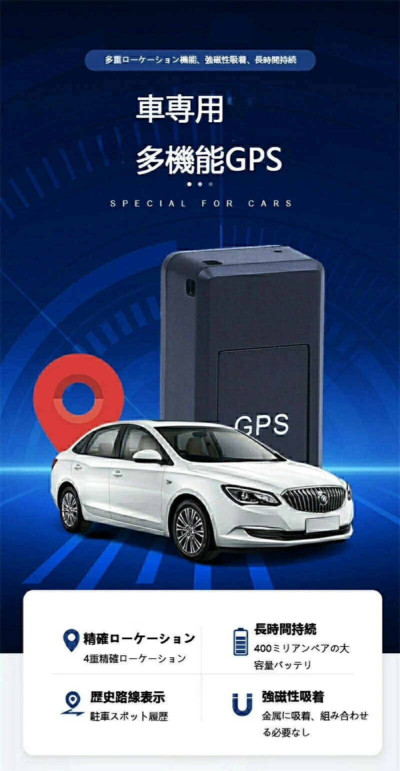 この商品は、大容量バッテリーを装備したGPS発信機です。主に浮気調査や盗難防止などに使用されるもので、リアルタイムの位置情報を取得することが可能です。そのため、所定の位置から移動した際にすぐに把握することができます。このGPS追跡器は小型で、どこにでも簡単に取り付けることが可能です。また、大容量バッテリーを搭載しているため、長時間の使用も可能です。また、本体は耐久性に優れており、多少の衝撃や悪天候にも耐えられるように設計されています。本製品は、調査会社やセキュリティ業者だけでなく、一般の方々の生活への安全対策としても活用可能です。例えば、車やバイクの盗難防止、子供やペットの迷子防止、高齢者の徘徊防止など、さまざまな用途でご利用いただけます。ただし、プライバシー問題などには配慮し、適切な使用を心掛けてください。このGPSデバイスは、SIMカードを必要とします。SIMカードが装着されることで、リアルタイムの位置情報を提供します。この機能により、デバイスは位置情報を提供するためにモバイルネットワークとやり取りすることが可能です。SIMカードを装着すれば、いつでもどこでも追跡情報を提供することができます。購入時にSIMカードは含まれていませんので、別途お客様自身でご準備いただく必要があります。この商品は、大容量バッテリーを装備したGPS発信機です。主に浮気調査や盗難防止などに使用されるもので、リアルタイムの位置情報を取得することが可能です。そのため、所定の位置から移動した際にすぐに把握することができます。このGPS追跡器は小型で、どこにでも簡単に取り付けることが可能です。また、大容量バッテリーを搭載しているため、長時間の使用も可能です。また、本体は耐久性に優れており、多少の衝撃や悪天候にも耐えられるように設計されています。本製品は、調査会社やセキュリティ業者だけでなく、一般の方々の生活への安全対策としても活用可能です。例えば、車やバイクの盗難防止、子供やペットの迷子防止、高齢者の徘徊防止など、さまざまな用途でご利用いただけます。ただし、プライバシー問題などには配慮し、適切な使用を心掛けてください。このGPSデバイスは、SIMカードを必要とします。SIMカードが装着されることで、リアルタイムの位置情報を提供します。この機能により、デバイスは位置情報を提供するためにモバイルネットワークとやり取りすることが可能です。SIMカードを装着すれば、いつでもどこでも追跡情報を提供することができます。購入時にSIMカードは含まれていませんので、別途お客様自身でご準備いただく必要があります。