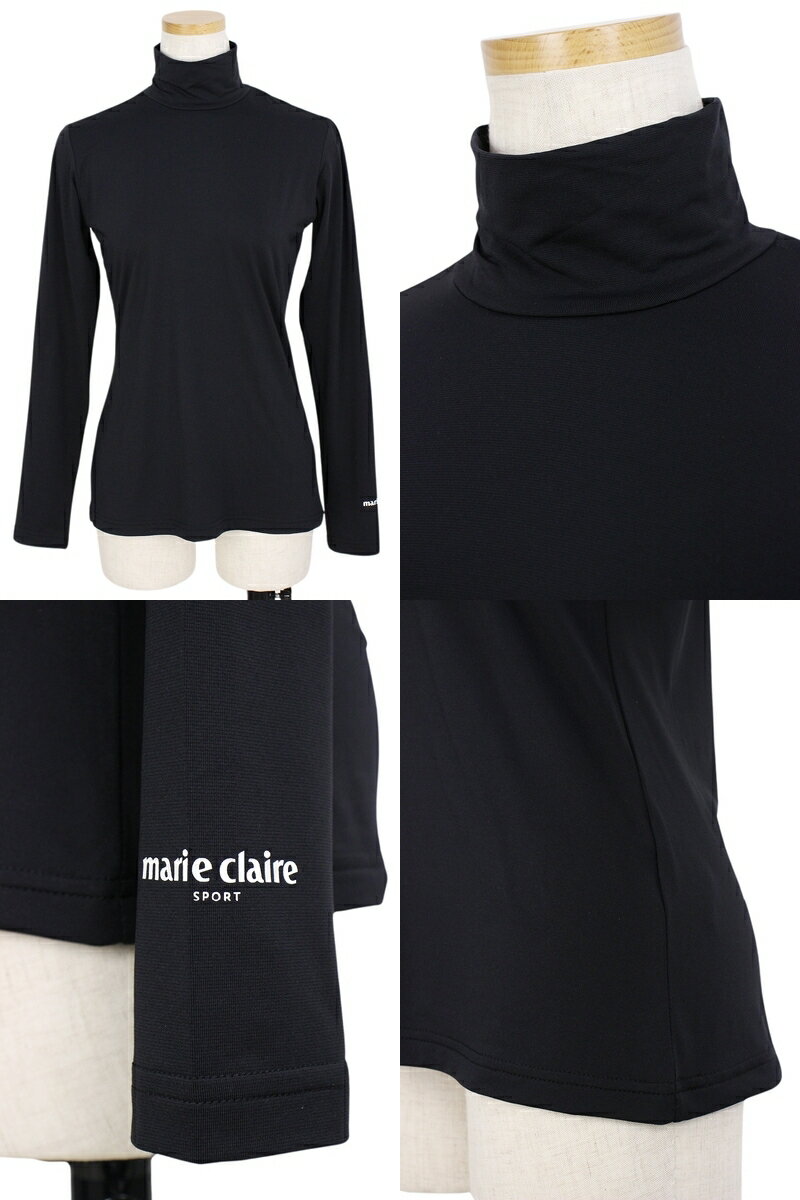 マリクレール マリ・クレール スポール marie claire sport レディース ハイネックシャツ 長袖 インナーシャツ 裏起毛 +3.4℃ モックネック アンダーウェア 袖ロゴプリント M〜3L ゴルフウェア 【送料無料】