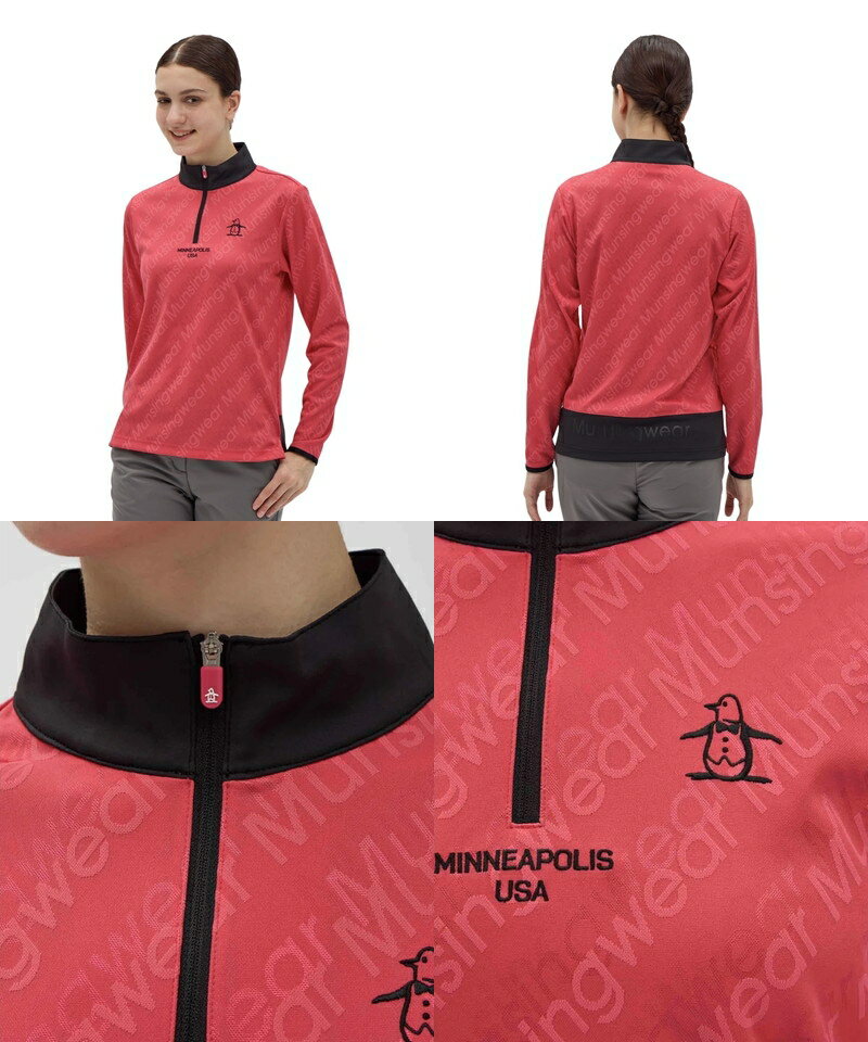 【ブラックフライデーP10倍】マンシングウェア Munsingwear レディース ポロシャツ 長袖 ハーフジップシャツ ハイネックシャツ UVカット 吸汗速乾 バイアスロゴジャガード ロゴ刺繍 M〜3L 【送料無料】 2025 秋冬 新作 ゴルフウェア