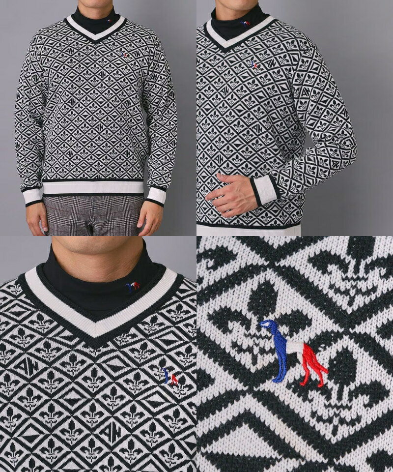 アダバット adabat メンズ セーター 【新レーベル ADABAT NAVY】 フルールドリスVネックニット 【送料無料】 2025 秋冬 新作 ゴルフウェア