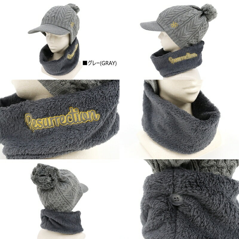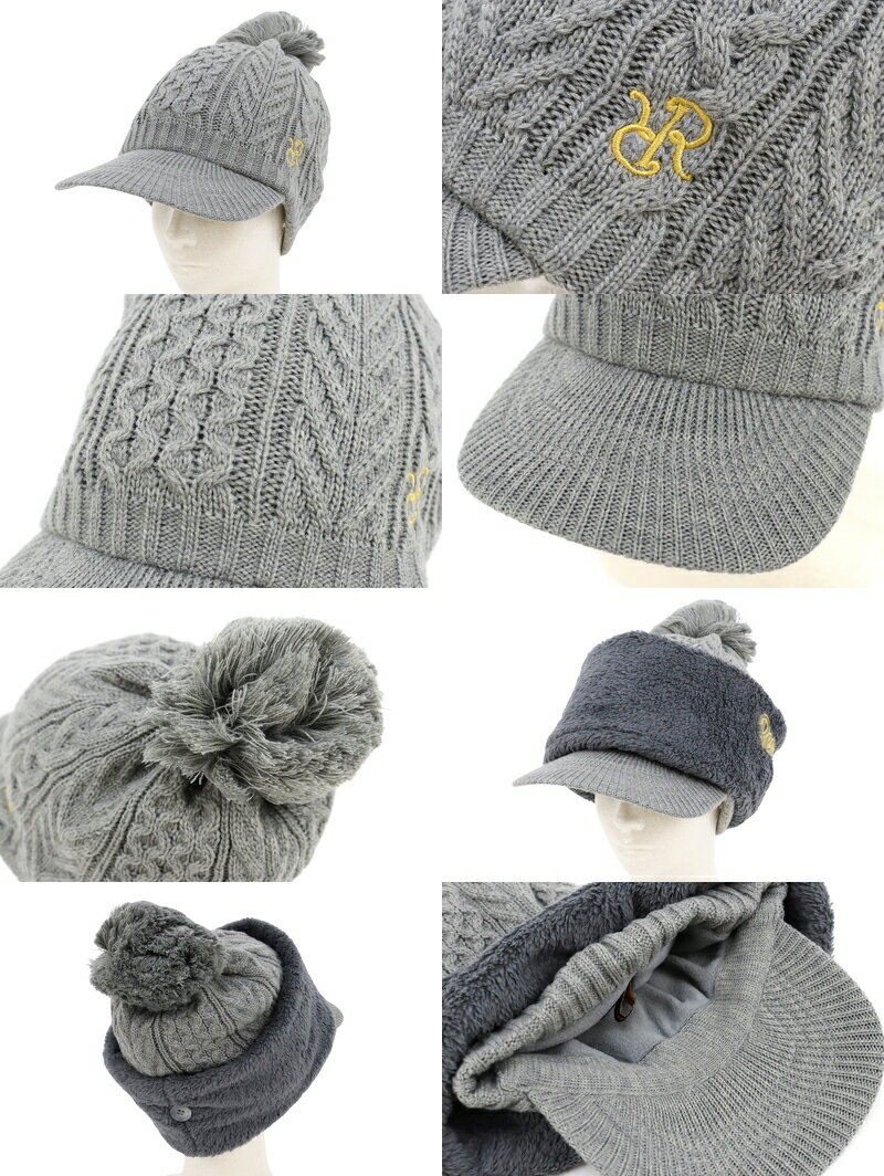 レザレクション Resurrection レディース キャップ つば付きニット帽 ニットキャップ フリースネックウォーマー付き 3WAY 保温 防寒 裏フリース ケーブル編み ボンボン付き ロゴ刺繍 【送料無料】 2025 秋冬 新作 ゴルフ
