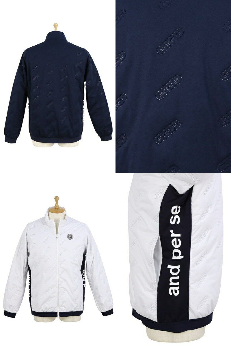 アンパスィ and per se メンズ ブルゾン 中綿入り 保温 防寒 撥水 異素材配色切替 軽量中綿×ストレッチジャージ素材 着圧キルト エンボスロゴ M〜3Lまで 【送料無料】 2025 秋冬 新作 ゴルフウェア