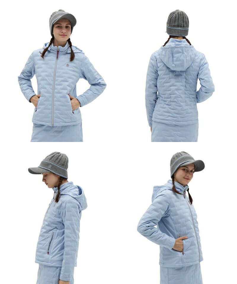 マンシングウェア Munsingwear レディース ブルゾン フード付き 中綿入り +5℃ 蓄熱 保温 防風 撥水 軽量 サイド素材切替 ロゴプリント M〜3Lまでご用意 【送料無料】 2025 秋冬 新作 ゴルフウェア