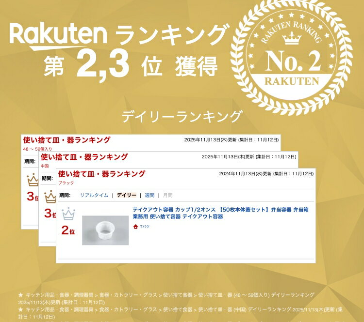 テイクアウト容器 カップ1/2オンス 【50枚本体蓋セット】弁当容器 弁当箱 業務用 使い捨て容器 テイクアウト容器