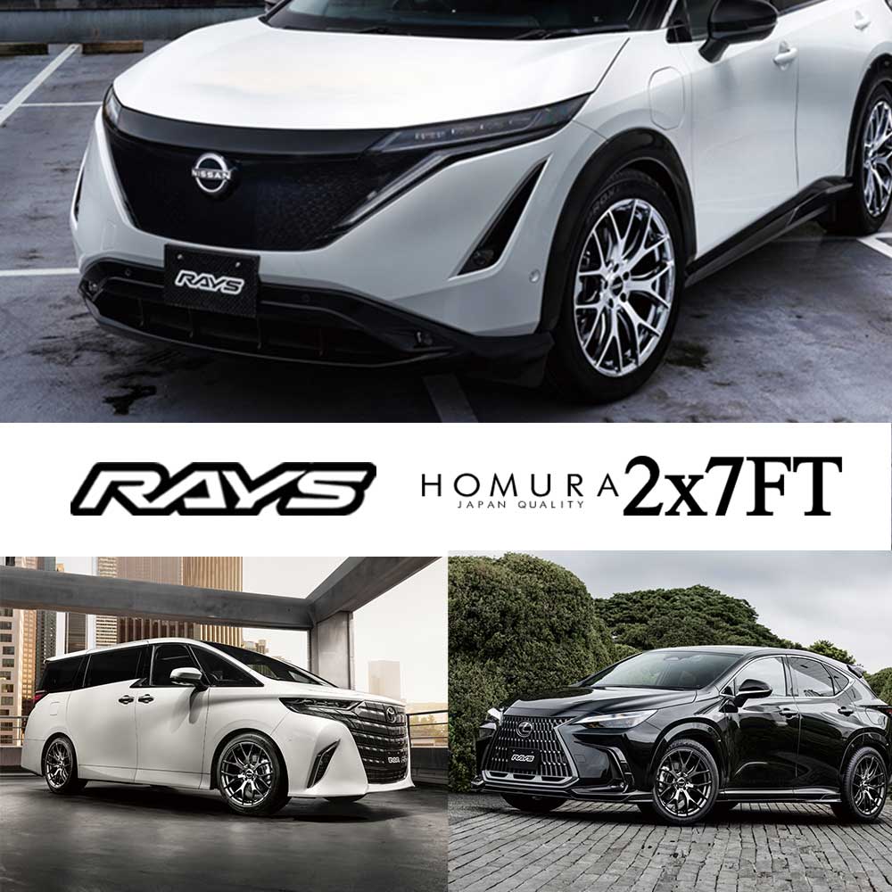 ■注文の際の注意事項 購入時に項目選択肢にて選択された内容によっては、後に金額の変更を行わせていただく場合がございます。 お買い物かごには反映されませんのでご注意ください。 例)カラーの変更 / オプション品の購入 等 ■タイヤホイールセット承ります タイヤと同時購入でタイヤホイールセット承ります。(別途工賃必要) ・サマータイヤホイールセット・スタッドレスタイヤホイールセット・オールシーズンタイヤホイールセット組み合わせは自由です。 ※納期・適合につきましてはお問い合わせフォームよりお気軽にお問い合わせくださいませ。ホイール HOMURA 2x7FT ホイールサイズ 19 8.0 5/114.3 INSET: +38 +45 カラー ブラッククロームコーティング (YNJ) 付属品 センターキャップ、バルブ 特徴 時代の流れと共に大型化するプレミアムカーのボディマスやタイヤ外径が大きくなる新型車へ新たなアプローチをするために「より大きく、より長く」をテーマに、新造形のフラットテーパー断面を採用。 これにより大きく伸びやかな表現を可能にし、今までにないエレガントな佇まいを実現したHOMURA 2X7FT。