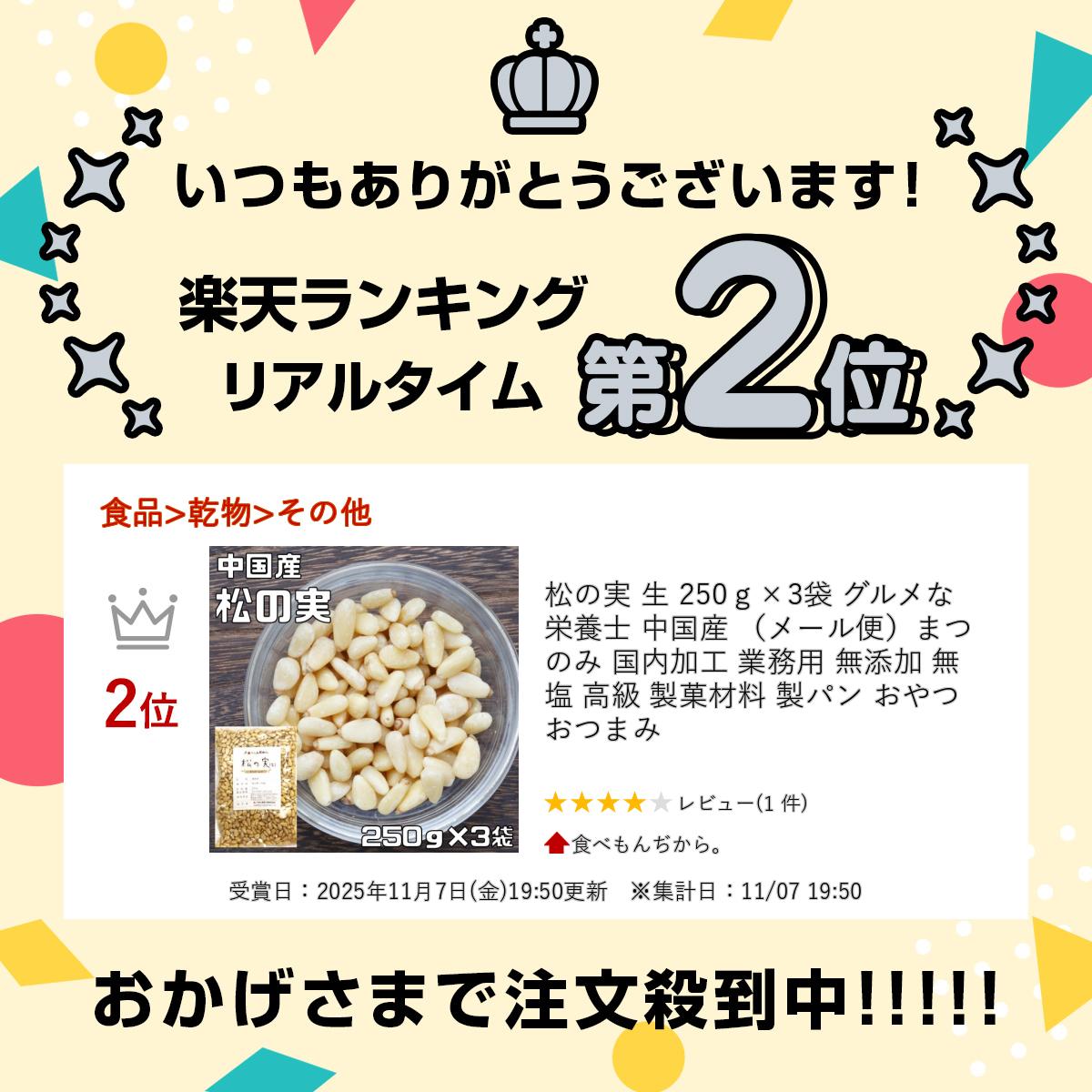 松の実 生 250g×3袋 グルメな栄養士 中国産 (メール便)まつのみ 国内加工 業務用 無添加 無塩 高級 製菓材料 製パン おやつ おつまみ