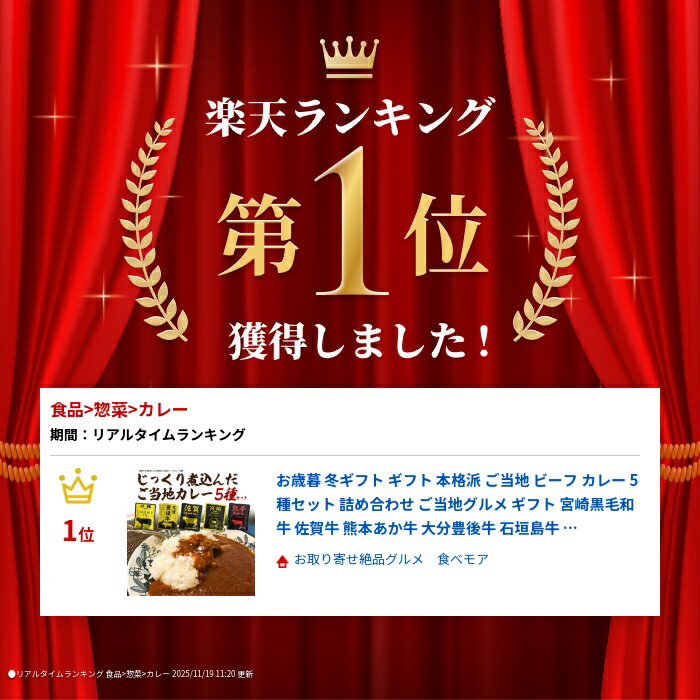 【当店の商品について】 贈り物に最適なお取り寄せグルメを取り揃えております。 是非、様々なシーンでご利用ください。 ギフト注文(送付先の方がご注文者様と異なる場合) 金額の入った明細書はお入れしておりませんので、ご安心ください。 【 お祝い 弔事 】 結婚祝い 結婚引出物 結婚内祝い 結婚御祝い 結婚祝い 結婚記念日 婚約祝い ウェディングシャワー ブライダル ウエディング ウェディングアフターパーティー ブライダルアニバーサリー 金婚式 銀婚式 真珠婚式 ウェディングアニバーサリー 出産祝い: 母子手帳の記念 出産内祝い 命名内祝い 赤ちゃんの誕生 長寿祝い: 長寿祝い 初老祝い 還暦祝い 古稀祝い 喜寿祝い 傘寿祝い 米寿祝い 卒寿祝い 白寿祝い 新築・引越し祝い: 新築内祝い 上棟祝い 新築祝い 引っ越し祝い 引越し祝い 新居祝い 開店・周年祝い: 開店祝い 周年祝い 店舗オープン リニューアルオープン 事業拡大祝い 入学・卒業・就職祝い: 入学内祝い 進学内祝い 卒業内祝い 就職内祝い 入学祝い 進学祝い 卒業祝い 就職祝い 転職祝い その他のお祝い: 初節句 七五三 祝賀会 成人式 成人祝い バースデイ 家族の記念日 友人との再会 学校の同窓会 会社の同窓会 学校の文化祭 地域のお祭り 季節のフェスティバル 春のお花見 お月見 お返し・お礼 結婚内祝い 出産内祝い 新築内祝い 快気祝い・お見舞い返し: 快気祝い お見舞い返し 香典返し・法要引き出物: 法事引き物 粗供養 法要 香典返し 志 満中陰志 お礼全般: 各種 内祝い・お返し 御礼 お礼 御年賀 お年賀 御中元 お中元 暑中御見舞 暑中見舞い 残暑御見舞 残暑見舞い 暑中御伺い 残暑御伺い 寒中見舞い 寒中御見舞い 御歳暮 手土産 退職記念 送別会 歓迎会 新年会 歓送迎会 お詫び 謝罪 病気見舞い 贈答品 贈呈 イベントのお礼 お祝い返し 御礼状付き 帰省の手土産 新しい隣人への挨拶 友人への感謝 訪問のお礼 友人の新築祝い 早割 早割り 記念品・賞品: 記念品 賞品 景品 【イベント 行事】 季節のイベント: クリスマス バレンタインデー ホワイトデー 母の日 父の日 敬老の日 お正月 ハロウィン イースター 春の贈り物 感謝祭 年末のご挨拶 年末ギフト お年玉 花見のお供 夏祭り 夏の手土産 お盆 感謝の気持ち サンクスギビング お彼岸 パーティー: ガーデンパーティー バースデーパーティー ディナーパーティー キッズパーティー ウェディングパーティー ブライダルシャワー 女子会 ホームパーティー オフィスパーティー 【その他】 その他 ゴルフコンペ 成果報告会 打ち上げ 家族の集い 親子の日 子供の日 デート 夜のディナー ランチ会 カフェタイム 学園祭 カルチャーデイ 劇場公開祝い 映画鑑賞 リラックスタイム キッズイベント 子供の誕生日パーティー カップルの休日 プロポーズ 夫婦の記念日 家族の記念日 ランチミーティング 自分へのご褒美 頑張る自分へ 音楽のお供 映画のお供 読書のお供 趣味のお供 【贈る相手】 家族: お父さん お母さん おじいちゃん おばあちゃん 父 母 両親 祖父 祖母 年配 兄弟 姉妹 子供 子ども 親戚: 親戚 友人・知人: 友達 友人 女友達 男友達 友人との再会 新しい隣人への挨拶 職場関係: 先生 恩師 社員 従業員 上司 同僚 部下 先輩 後輩 職場 取引先 恋人: 恋人 彼女 彼氏 その他: 母親 母 義母 10代 20代 30代 40代 50代 60代 70代 80代 90代 60歳 70歳 80歳 90歳 100歳 【価格帯】 送料無料 500円 1000円 1500円 2000円 2500円 3000円 3500円 予算 相場 早割 【商品の特徴】 グルメ 体験ギフト 贅沢 美味しい 人気 贈り物 オススメ こだわり 食べ物 実用的 おしゃれなテーブルコーディネート ご褒美 ボーナス ネットショッピング 【法人・ビジネス】 ビジネスギフト 社長への贈り物 上司への贈り物 同僚への贈り物 部下への贈り物 お世話になった方へ 招待 社内イベント オフィスパーティー リモートワーク 社員研修 新入社員歓迎 退職者送別 サプライズギフト 店舗オープン リニューアルオープン 事業拡大祝い 法人 会社 福利厚生 社内表彰 業績達成 永年勤続表彰 成績優秀者表彰 売上目標達成 謝恩会本格派ご当地ビーフカレー5種セット 国産牛を使用した本格派ビーフカレー5種セット。 全国的に有名なブランド牛である宮崎県産黒毛和牛を使用したビーフカレー、 赤みにきめ細やかな美しい霜降りが特徴の佐賀県産黒毛和牛を使用したビーフカレー、 熊本県産あか牛を使用し、野菜とじっくり煮込んだビーフカレー、 旨みたっぷりの湯布院牛と野菜を煮込んだ大分豊後牛カレー、 柔らかくジューシーな石垣島和牛を使用したビーフカレーの5種をお楽しみいただけます。 1パック1人前で個包装されているので、食べたいときにいつでも湯煎で簡単に調理できます。 賞味期限が長いので、長期保存も可能です。 製品仕様 名称 カレー 内容量 各160g(1人前) 賞味期限 商品ラベル参照 保存方法 常温で保存してください。 温め方 袋の封を切らずにそのまま熱湯に入れ、約3〜5分間温めてください。電子レンジで温める場合は、中身を必ず深め皿に
