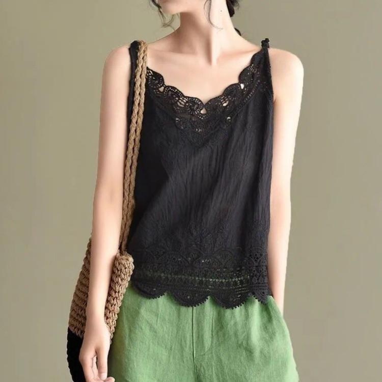 【送料無料】薄手 インナー レース 無地 インナーウェア キャミソ レイヤード 重ね着 下着 綿 肌着 レディース 裾レース Vネック 薄手 かわいい ノースリーブ 重ね着 キャミソール 春 夏 夏物 ゆったり 20代 30代 40代 フリーサイズ トップス