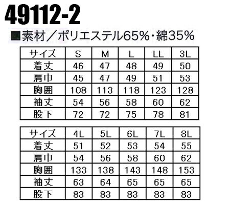 作業服 作業着 ワークユニフォーム 長袖つなぎ服 クロダルマ KURODARUMA 49112-2 ポリエステル65%・綿35% メンズ