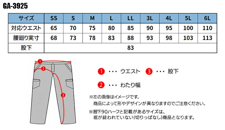 ストレッチ カーゴパンツ コーコス信岡 CO-COSGA-3925の商品詳細 GLADIATORワークウェアの第二弾! スタイリッシュなデザインにストレッチを効かせた動きを妨げない仕様。 本格派リアルワーカーのパフォーマンスを引き出すアイテム。 作業服の商品詳細 品 番 コーコス信岡 CO-COS GA-3925 シーズン 秋冬用 素 材 綿57%・ポリエステル40%・ポリウレタン3% アメイジングストレッチ ブラックチノ カラー 1 ネイビー 6 ブルー 15 アッシュ 29 アーミー その他 海外生地、海外染色のため、製品により若干の色違いが発生することがございます。ご了承ください。 塗料が色落ちしますので他の物と一緒に洗わないでください。汗や雨などで湿った状態および摩擦によって色移りすることがあります。洗濯により3%前後縮みますので丈詰めをする際には股下を長めにしてください。乾燥機の使用は避けてください。 素材の特性上、生地性能の低下を招く可能性がありますので、タンブル乾燥機のご使用はお避け下さい。熱やスチームで縮むことがありますので、アイロン掛けには充分注意して下さい。 ストレッチ ウエストストレッチ 機能詳細一覧はこちら 作業服の色合いを上下セットで揃えたい場合、同シリーズでお選び下さい。同メーカーでも品番が異なると素材の特徴により色合いが異なります。 長袖ジャケット カーゴパンツ ジョガーカーゴパンツ
