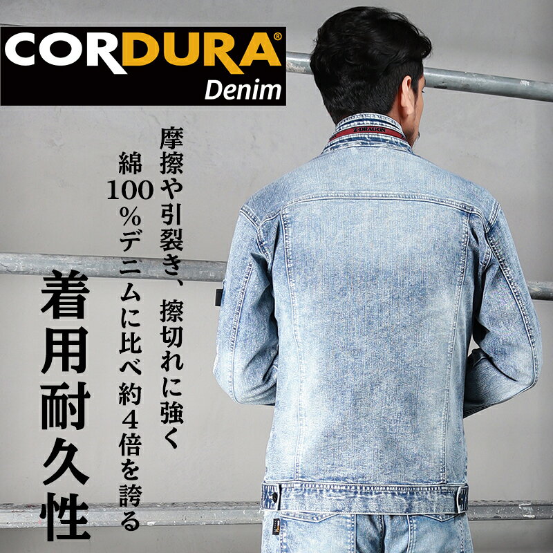 Z-DRAGON 上下セット 作業服 デニム ストレッチ コーデュラ 長袖ジャンパー 72300 SS-LL カーゴパンツ 72302 L59-88 メンズ レディース 通年用 作業着 作業ズボン ジードラゴン