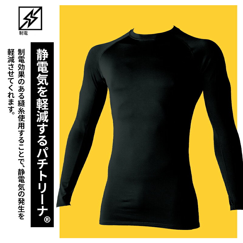中肉の裏起毛の冬用インナー 静電気の発生を軽減させる縫糸「パチトリーナ」使用 ラグラン袖とトリカット仕様で可動域UP 袖口まで暖かい長袖仕様 品 番 寅壱 7951-617 シーズン 秋冬用 素 材 バックファースムース ポリエステル92%・ポリウレタン8% カラー 7 グレー 13 クロ 77 スミグレー 裏起毛 保温 制電 UVカット 再帰性反射 レギュラーシルエット 機能詳細一覧はこちら 作業服の色合いを揃えたい場合、同シリーズでお選び下さい。同メーカーでも品番が異なると素材の特徴により色合いが異なります。 半袖Tシャツ 長袖Tシャツ ロングタイツ