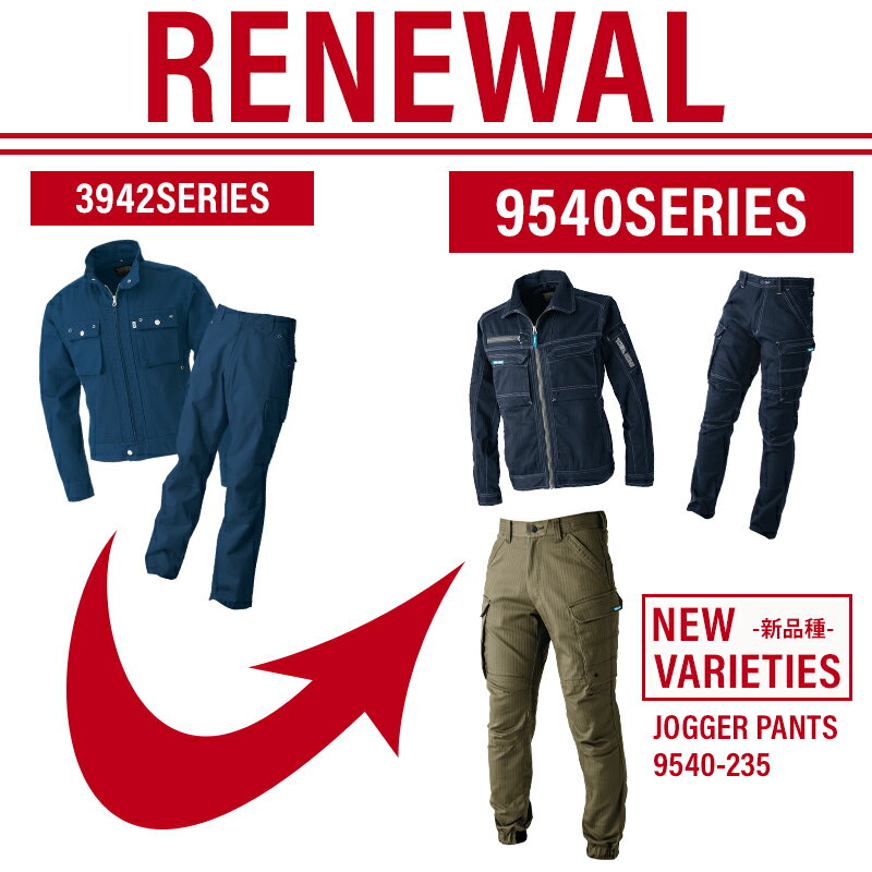 コットンライクな風合いで、ストレッチの効いた素材に織り柄を入れて表面感を演出 デザインポイントとなる大きなカーゴポケットが無骨なイメージ 品 番 TORA 9540-235 シーズン 秋冬用 素 材 ポリエステル65%・綿33%・ポリウレタン2% ブロークンツイル(制電糸入変形へリンボン) カラー 13 クロ 14 濃コン 37 シルバー 53 カーキ 制電 ストレッチ 伸長率:横15.5% 伸長回復:横78.0% シルエット:レギュラー 機能詳細一覧はこちら 作業服の色合いを揃えたい場合、同シリーズでお選び下さい。同メーカーでも品番が異なると素材の特徴により色合いが異なります。 長袖ジャケット カーゴパンツ カーゴジョガーパンツ