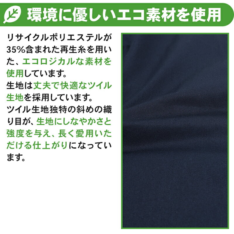 SDGsに対応したエコロジカルなプロダクト 製品制電とストレッチ機能も兼備 現代の企業ユニフォームスタイルにフィットするグローバルスタンダードモデル 品 番 BURTLE 6202 シーズン 秋冬用6212 素 材 複合繊維ポリエステル45%・リサイクルポリエステル35%・綿20% エコストレッチツイル(伸長率20%) カラー 3 ネイビー 14 ミルスグリーン 35 ブラック 60 アッシュグレー その他 ※SS・Sはユニセックスサイズです。 ユニセックス リサイクル 制電ケア JIS T8118適合 ストレッチ 機能詳細一覧はこちら 作業服の色合いを揃えたい場合、同シリーズでお選び下さい。同メーカーでも品番が異なると素材の特徴により色合いが異なります。 長袖ジャケット 長袖シャツ カーゴパンツ パンツ