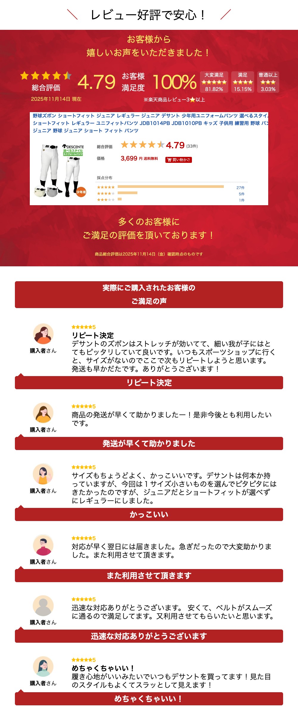 動きやすさは進化する!プロの要求に応える中で生まれた『カラダに沿う』ユニフィットパンツは、プレー中の幅広い動きに対応。動きやすさは、さらなる領域へ。【運動性・耐久性を追求した UNIFIT PANTS 4つの特徴】POINT.1 プロの信頼豊富なプロ採用実績から生まれた設計。プレー中の動 きやすさを追求したバリエーション豊富なラインナップ。POINT.2 軽量&耐久性軽量性を維持しながら、高強力の糸を使うことで耐久性も保持する。POINT.3 ストレッチ性ストレッチ性を追求した素材を採用。パンツ素材に必 要なストレッチ性を実現することで、プレー中の幅広い動きに対応。POINT.4 腰まわりの機能性パフォーマンスを発揮する為に重要な腰まわりには、動きを妨げないベルトループとマーベルトを採用。幅広いプレーシーンを想定したストレッチ性を妨げない傾斜ループを採用。腰まわりのフィット感を高める為、50mmのマーベルトを採用。■スタイル/・ショートフィット(JDB1014PB)・レギュラー(JDB1010PB)■カラー・ショートフィット/Sホワイト、Sアイボ・レギュラー/Sホワイト、Sアイボ、シルバー■サイズ/・ショートフィット/120、130、140、150、160・レギュラー/130、140、150、160■素材/ポリエステル100%■生産国/日本、ベトナムデサント DESCENTE ユニフォーム パンツ 練習用 試合用 ユニフィットパンツ ショートフィット レギュラーこども用 少年用 ジュニア用 練習着 ストレッチ 吸汗 軽量 ☆2024unipan★関連商品野球ズボン ショートフィット ジュニア レギュラー ジュニア デサント...ローリングス野球ズボン ジュニア 4d ショートフィット レギュラー ...デサント 限定 少年 ジュニア 野球 パンツ ユニフォーム ショートフ...3,999円4,189円4,980円デサント ユニフィットパンツプラス ストレートパンツ Sホワイト db...野球ズボン 子供 ショートフィット ジュニア レギュラー ジュニア S...デサント 野球ズボン 選べるスタイル ユニフォームパンツ ショートフィ...3,960円3,399円3,899円デサント ジュニア 立衿2ボタンベースボールシャツ jdb-110b ...デサント 野球 パンツ ライン入りユニフィットパンツプラス ショートフ...【要エントリー】商品お気に入り登録でポイント当たる! 野球ズボン ショ...3,740円5,999円3,980円野球ズボン SSK 練習用ユニフォームパンツ 3Dカッティング 選べる...ミズノ 野球用練習着 練習用シャツ オープンタイプ 12jc8f680...デサント ジュニア 2ボタンベースボールシャツ jdb-103b 【メ...3,699円3,677円3,740円関連ワード: 野球 ジュニア パンツ グレー 野球 パンツ 120 ショート 野球 パンツ ジュニア ショート 野球 ジュニア ショート フィット パンツ 野球 パンツ ジュニア 野球 ユニフォーム パンツ 試合 野球 パンツ 野球 パンツ ライン入り デサント db 1014p デサント DB 1014P キッズ 野球 パンツ 野球 パンツ デサント ライン 野球 パンツ ショート フィット 野球 レギュラー パンツ 野球 パンツ ショートフィット descente ジュニア db1014p 野球ズボン ショートフィット レギュラー ユニフィットパンツ デサント 少年用ユニフォームパンツ 練習用 ストレッチ 吸汗 軽量 ショートフィット【必ずご確認ください】最強配送についてのご注意【こちらをクリック】
