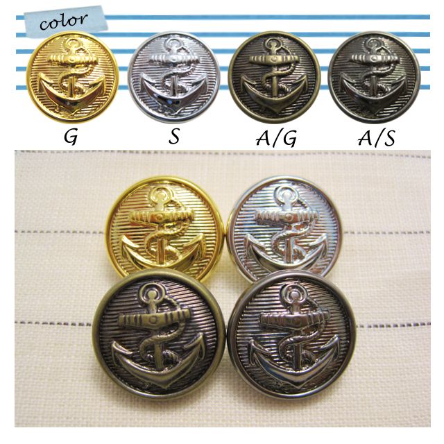 メタリック イカリ ボタン (メッキ・金属調・4色展開) 11.5mm×1個