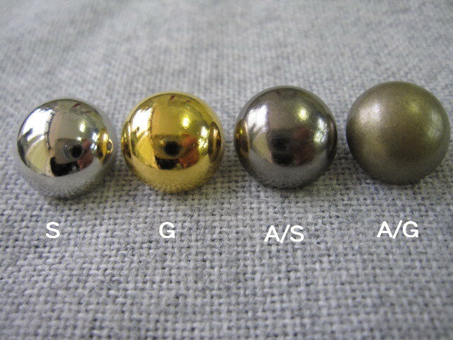 【商品説明】 ♪当店のロングセラー商品、きのこ型メタル調ボタンです。 ♪カラーは豊富な4色展開! ♪ABS樹脂メッキ素材で重さの軽いメタル調ボタンです。 ■サイズと数量 ・10mm×10個セット (10mmフレーム厚・・・約4.5mm) ・11.5mm×10個セット (11.5mmフレーム厚・・・約6.5mm) ・13mm×9個セット (13mmフレーム厚・・・約7.4mm) ・15mm×9個セット (15mmフレーム厚・・・約9mm) 〇単品売り・その他サイズはこちらから〇 ・10mm or 11.5mm×1個 ・13mm or 15mm×1個 ・18mm×1個 ・21mm×1個 ■カラー ・G(ゴールド) ・S(シルバー) ・A/G(アンティーク・ゴールド) ・A/S(アンティーク・シルバー) 素材 ABS樹脂メッキ(ABS) ABS樹脂メッキはABS樹脂にメッキ加工を施したもので、とても軽量です。 お洋服のシルエットを美しく保つ事ができます。 ※カラーは、ブラウザの設定やディスプレイ環境により実際の色と異なる場合がございますのであらかじめご了承くださいませ。 【ご使用の注意】 ・直接のアイロンは避けていただくようお願いします。 ・漂白剤(特に塩素系漂白剤)の入った水ににつけると錆びる恐れがあります。 ●・○・●・○・●・○・●・○・●・○・●・○・●・○・●・○・● お支払方法、メール便・宅配便の 送料についてはこちらから ※メール便はポスト投函となる為、配送日時指定はできませんのでご了承ください。 ※お急ぎの場合、配送日時指定、代金引換の場合は宅配便をご利用下さいませ。 ◆ 在庫表示に関して ◆ 在庫管理には細心の注意を払っておりますが、 複数の発注が重なった場合など在庫情報との タイムラグにより 売り違い(商品完売後に発注をいただくこと)が発生する場合がございます。 大変ご迷惑をお掛けしますが、予めご理解いただきますようお願い申し上げます。 TAISEI BUTTON 【タイセイボタン】【太成ボタン】 \当店おすすめ福袋はこちら/ 釦 ボタン ぼたん 服飾 飾り 付け替え つけかえ リメイク 洋裁 裁縫 手作り 手芸 ハンドメイド メタル調 メッキ 小さい 厚型 軽い 軽量 シンプル かわいい コスチューム 小物用 ドール服 人形服 ペット服 子供服 大人服 ボタンアクセサリー 色(金色 ゴールド 銀色 シルバー アンティークゴールド アンティークシルバー)用途(コート カーディガン ぬいぐるみやペットの洋服 小物作り)