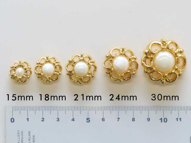パール調 太い透かし柄 ゴールド メッキ ボタン15mm、18mm、21mm、24mm、30mmから選べるお得な100個セット