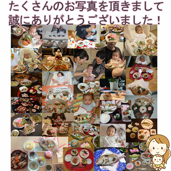 2013年に販売開始した当ショップの『お食い初め (百日祝い) 手作り料理セット』の累計販売個数が "1万6,000個" を突破 しました! 1人目、2人目、3人目とお子様が誕生する度にリピート購入 していただくことも多い ”大人気のロングセラー商品” です。 ぜひ、お食い初めの際にご利用ください! ご家庭で焼くのが 不安のある方は、 +1,728円で焼き加工 を承ります! こちらから >> 鯛の サイズアップ も承っています。 100gアップするごとに+324円 となります。 こちらから >> ※お食い初めの儀式のやり方、調理方法、 他のお客様の盛り付け例など充実のレシピ 付きで新米ママでもご安心頂けます。 中国産はまぐりを 国産に替える ことも承っており、 +600円(税別) となります。 国産はまぐりは入荷のない日も ございます。 入荷のない時は 申し訳ございませんが中国産 になります。 その場合、金額は頂きません。 ご理解を頂きました上でのご注文 を宜しくお願い致します。 こちらから >>