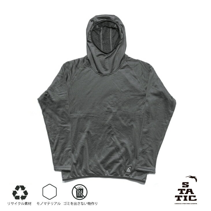 フリースとして使う"Octa® CPCP®" - アドリフト プルオーバーフーディ 近年、急速に拡大したアウトドアウェア、アクティブインサレーションカテゴリ。 主に海外ブランドが先行して商品開発を行なっていました。 そんなアクティブインサレーションの中綿素材の1つとしてTEIJIN "Octa® CPCP®"があり、その軽量性と高い保温力を持つ素材でした。 STATICでは通常中綿製品の裏地素材として使われている"Octa® CPCP®"を1枚地で使う選択をしました。 標高が高く乾燥した気候で開発を行なっているブランドの製品は、"Octa® CPCP®"をナイロンシェル素材と組み合わせているため重く、保温着として持ち運ぶことの多い日本ではレイヤリングしにくいと考えたからです。 特殊なメッシュ構造のため、一般的に薄手と言われる300g前後のフリースと比べ圧倒的に軽く、重量比の保温性が非常に高く携帯性に優れるのでオールシーズン活躍します。 ≪Octa® CPCP®≫ 表のメッシュ素材に保温材になる異形断面中空ポリエステル起毛繊維を一体化させたメッシュフリース素材の"Octa® CPCP®"は、その軽さと暖かさ、熱抜けの良さが特徴のポリエステル生地です。 通常は裏地として使いますが、STATICでは単体フリースとして採用しました。 ・軽量感:同じ直径のポリエステル繊維に比べて、2分の1程度の軽量感を実現 ・吸汗速乾性:同じ直径のポリエステル繊維に比べて、2分の1程度の軽量感を実現 ・遮熱性:中空部と8本の突起による空間に含まれるデッドエアーが遮熱効果を実現 -------------------------------- 【SUSTAINABILITY】 ・リサイクル化によりバージンポリエステルのOctaCPCPと比較し生地製造時におけるCO2排出量を23%削減 ・OEKO-TEX®認証(※)を受けた日本国内工場で生産した生地を使用しています ・生地の染色工程においては石油ではなくバイオマス(植物由来)を使いCO2排出削減している ・製品製造工程で発生する裁断ゴミは焼却処分せずに新しい生地として再生されます ・ブランド・サイズタグ・品質表示: ペットボトル由来リサイクルポリエステル100% ・こちらの商品はビニール個包装をせず、薄紙に包んでの発送になります ※OEKO-TEX®認証 エコテックス®は、日本の安全基準をはるかに超える、350種以上の有害物質を対象とした世界最高水準の安全な製品の証明をはじめ、生産にたずさわる人や環境への負荷にも配慮したサステナブルな工場の認証など、繊維ビジネスにおける、世界に通ずる安全の証です。 -------------------------------- 【PRODUCT FEATURE】 ・肩周りが動かしやすいラグランスリーブに変更 ・袖口にはサムループ付き ・メッシュ地のため軽量・高通気、それでいて高い保温力を持つ -------------------------------- 【PRODUCT SPEC】 カラー Off Black サイズ XXS / XS / S / M / L / XL 生地 "Octa® CPCP®" ポリエステル100%(内リサイクルポリエステル53%) フィット リラックス 重量 144 g (Mサイズ) 繊維/生地原産国 日本 染色 日本 製造国 日本 JAN 4573600665550:XXS 4573600665567:XS 4573600665574:S 4573600665581:M 4573600665598:L 4573600665604:XL -------------------------------- 【ケア方法・注意事項】 ・柔軟剤、漂白剤は使えません ・手洗いまたは、洗濯ネットに入れておしゃれ着洗いや手洗いモードにて回してください ・乾燥機、ドライクリーニングは不可 ・尖ったものの引っ掛けには弱い生地ですので藪漕ぎ時には注意ください -------------------------------- 【ご購入前の注意事項】 ※商品のスペック・パッケージ・デザインは予告なく変更される場合がございます。 ※掲載画像はイメージ画像です。お使いのモニター設定、お部屋の照明等により実際の商品と色味が異なる場合がございます。