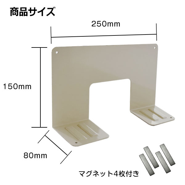 マグネット付き仕切り板 オープンなスチールラックに仕切り板を設置することで空間を区切って使用することが可能。 強力なマグネットなので、石材などの重量物でもしっかり支えられます。 棚板の積載面だけではなく、裏面にも取り付け可能なのでご希望の形で使用していただけます。 スペック 品番 TR-SSET251515 本体サイズ W250×D80×H150mm 板厚 1.6mm 内容物 本体・取付用マグネット4つ 使用上の注意 取付用のマグネットは強力な磁石となっております。本商品ご使用に当たり、手や物を挟まないよう厳重にご注意ください。※強力な磁石を使用していますので、パソコンやスマートフォンなどの電子機器やICカードやクレジットカードなどに近づけないでください。故障にの原因になる可能性がございます。 商品関連ワード:スチールラック 転倒防止 立てかけ 区分仕切り 仕切り板 仕切り ブックスタンド ブックエンド 石材 画材 絵画 額縁 フレーム 重量物