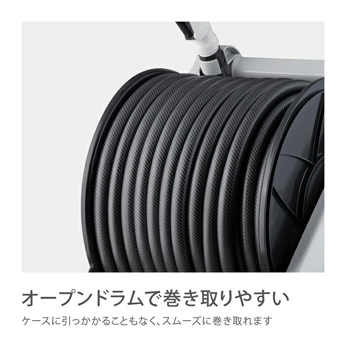 取扱説明書のダウンロードはこちら ホースのくっつきを防止する耐圧防藻すべホースを採用した散水ホースリールです。 内径15mmのホースを使用しているので、普通ホースよりも流量たっぷり使用できます。 ■製品仕様 最大使用可能水圧:0.7MPa ※低水圧スクリーンは0.3MPa 原料樹脂:ABS樹脂、ポリアセタール ポリプロピレン、エラストマー 金属材料:ステンレス ゴム材料:EPDM、NBR ホース材料:塩化ビニル樹脂(糸入り) ホースサイズ:内径15mm ■お手入れ、保管について ・製品が汚れた時は柔らかい布で水拭きしてください。 ・保管の際には直射日光を避けてください。 ・製品に洗剤や油などが付着するとプラスチック部分が割れる場合があります。 ■保証期間 お買い上げ日より2年間となります。 保証期間起算のため購入履歴をご確認ください。 当社の責以外による保証については保証致しかねます。 ■お問い合わせ先 ▼納期・送付先の変更、返品・キャンセル等 ご注文内容に関するお問合せ TEL:048-615-3551 ※下記内容をご準備の上、ご連絡をお願いいたします。 1.氏名(カナ) 2.注文番号 ▼取付方法、製品の不具合等 商品に関するお問合せ TEL:0120-37-5580 ※下記内容をご準備の上、ご連絡をお願いいたします。 1.氏名(カナ) 2.住所 3.電話番号 4.購入履歴 (購入履歴のスクリーンショットやショップからのメールなど) 5.不具合内容 6.不具合箇所の画像 ■明細書・領収書・保証書 ▼明細書について 当店では環境保a護と個人情報保護の観点により、 明細書・納品書を同梱しておりません。 「ご注文ありがとうございます」メールをもって 代えさせていただいております。 ▼領収書について 「注文履歴」よりお客様ご自身で発行いただけます。 ご入用の方は「商品出荷のご案内」メールをお受け取りいただいた後、 ご発行・プリントアウトしてご利用ください。 尚、決済方法により、上記機能をご利用いただけない場合がございます。 その場合は別途ご案内いたしますので、お手数ですが当店までご連絡ください。 ▼保証書について 製品の2年間保証について、 紛失等のトラブルを避けるために保証書は発行しておりません。 購入履歴が保証書の代わりとなります。 ■注意事項 ・本製品は一般家庭での屋外散水用品です。それ以外の目的には使用しないでください。 ・使用後は必ず蛇口を閉め製品の水を充分に抜いてください。(凍結破損防止・製品保護) ・コネクターは全自動洗濯機、食器洗い機など給水が自動の機器に使用しないでください。 ・井戸水で使用しないでください。 ・火気の近くで使用しないでください。 ・常温以外の水を使用しないでください。 ・飲用および食品加工などの用途には使用しないでください。 ホースは塩化ビニル樹脂製のためホースを通した水に臭いがつく場合があります。 ・水の勢いが弱い場合は、ホースをすべて引き出して試してください。