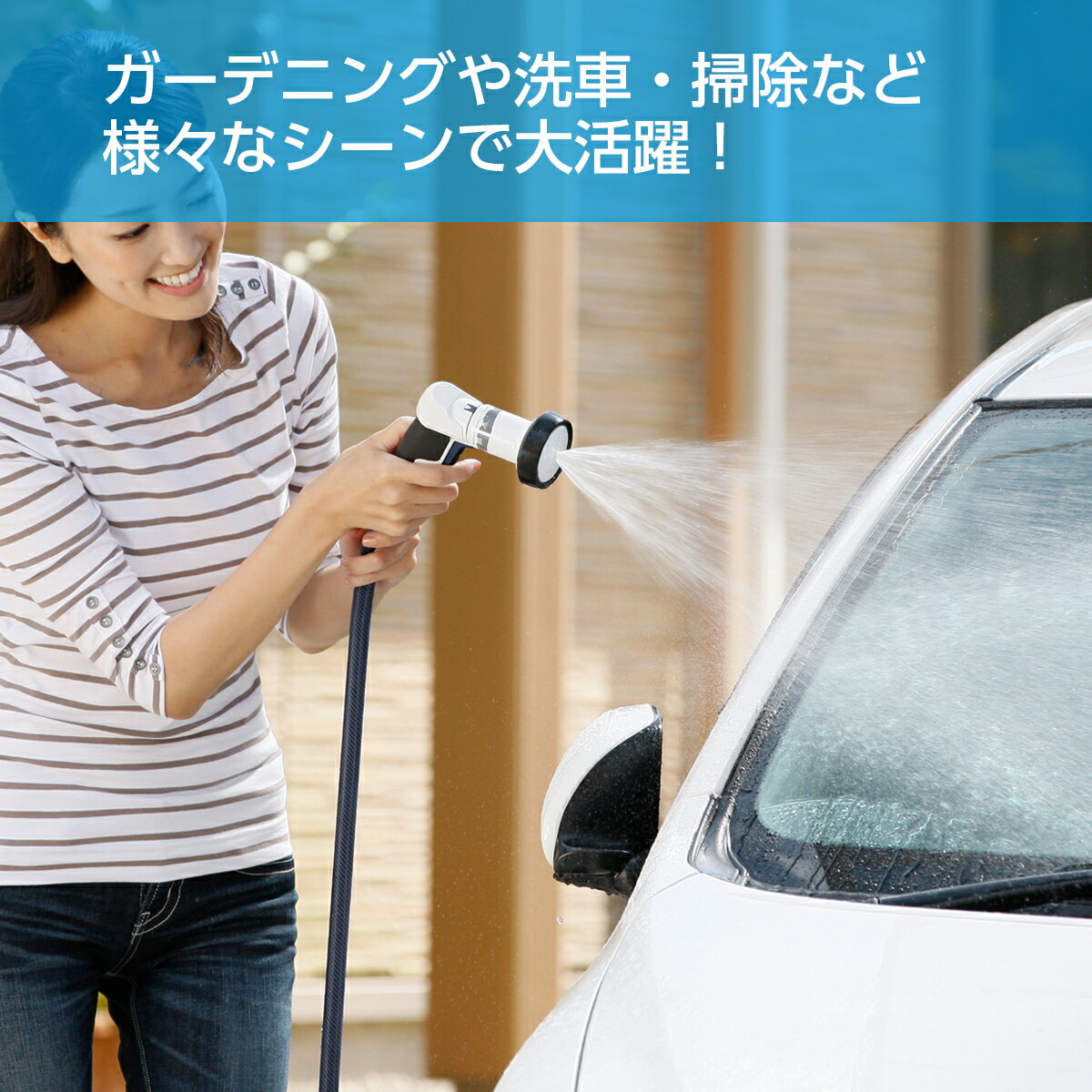 握りやすいソフトラバー仕様、通水/止水の切り替えが手元でワンクリックのプログリップシリーズです。 手元のレバーで水量調節もできます。 水形はカクサン・ストレート・ジョロ・シャワーの4種類に切り替えができます。 ワンタッチでノズルを交換できるコネクターを付属しています。 普通ホース(内径12-15mm/外径21mm)に対応です。 ■お手入れ、保管について ・製品が汚れた時は柔らかい布で水拭きしてください。 ・保管の際には直射日光を避けてください。 ・製品に洗剤や油などが付着するとプラスチック部分が割れる場合があります。 ■保証期間 お買い上げ日より2年間となります。 保証期間起算のため購入履歴をご確認ください。 当社の責以外による保証については保証致しかねます。 ■お問い合わせ先 ▼納期・送付先の変更・キャンセル等 ご注文内容に関するお問合せ TEL:048-615-3551 ※下記内容をご準備の上、ご連絡をお願いいたします。 1.氏名(カナ) 2.注文番号 ▼商品お受け取り後の返品に関するお問い合わせ 問い合わせチャットへご連絡をお願いいたします。 ※お客様都合による返品は以下の条件に当てはまる場合のみ受付可能です。 1.未開封・未使用の場合のみ対象です。 2.商品到着後8日以内にご連絡をいただいた場合のみ対応可能です。 3.返金額は商品購入時にお支払いいただいた商品代金を限度額とします。 ※商品代金以外の金額は返金しかねます。 4.返品送料はお客様負担となります。 ▼取付方法、製品の不具合等 商品に関するお問合せ TEL:0120-37-5580 ※下記内容をご準備の上、ご連絡をお願いいたします。 1.氏名(カナ) 2.住所 3.電話番号 4.購入履歴 (購入履歴のスクリーンショットやショップからのメールなど) 5.不具合内容 6.不具合箇所の画像 ■明細書・領収書・保証書 ▼明細書について 当店では環境保a護と個人情報保護の観点により、 明細書・納品書を同梱しておりません。 「ご注文ありがとうございます」メールをもって 代えさせていただいております。 ▼領収書について 「注文履歴」よりお客様ご自身で発行いただけます。 ご入用の方は「商品出荷のご案内」メールをお受け取りいただいた後、 ご発行・プリントアウトしてご利用ください。 尚、決済方法により、上記機能をご利用いただけない場合がございます。 その場合は別途ご案内いたしますので、お手数ですが当店までご連絡ください。 ▼保証書について 製品の2年間保証について、 紛失等のトラブルを避けるために保証書は発行しておりません。 購入履歴が保証書の代わりとなります。 ■注意事項 ・本製品は一般家庭での屋外散水用品です。それ以外の目的には使用しないでください。 ・使用後は必ず蛇口を閉め製品の水を充分に抜いてください。(凍結破損防止・製品保護) ・コネクターは全自動洗濯機、食器洗い機など給水が自動の機器に使用しないでください。 ・井戸水で使用しないでください。 ・火気の近くで使用しないでください。 ・常温以外の水を使用しないでください。 ・飲用および食品加工などの用途には使用しないでください。 ホースは塩化ビニル樹脂製のためホースを通した水に臭いがつく場合があります。 ・水の勢いが弱い場合は、ホースをすべて引き出して試してください。