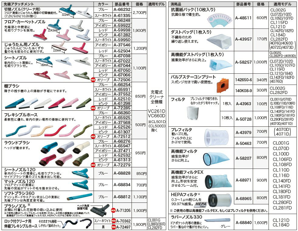 柔軟性に優れ車内の狭いところの掃除に便利です 適応モデル マキタ充電式クリーナ全機種・VC260D