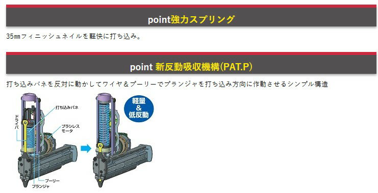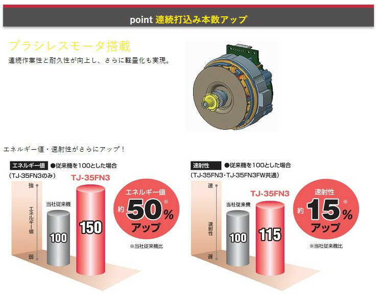 ※製品の保証書登録をご注文内容から弊社にて登録いたします。 安心の正規販売店 商品名 TJ-35FN3(本体のみ) 商品品番 PJ91655 JANコード 4902870 848118 希望小売価格 \59,500 (\65,450) 使用フィニッシュネイル 15 ・ 20 ・ 25 ・ 30 ・ 35 (mm) 質量 1.7kg 寸法(高さ×幅×長さ) 246×80×234(mm) 電池電圧 18V その他付属品 コンタクトトップ(TJ-35FN3のみ)、六角棒スパナ3mm、保護メガネ、キャリングケース 使用可能電池パック マックスリチウムイオン電池パック 18V:JP-L91850A・JP-L91825A