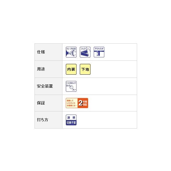 ※製品の保証書登録をご注文内容から弊社にて登録いたします。 安心の正規販売店 商品名 HA-25/10J 商品品番 HA94006 JANコード 4902870 813369 質量 1.0kg 寸法 (L×W×H) 165×61×261(mm) 使用ステープル 1013J〜1025J 使用空気圧 1.0〜2.3MPa(約10〜23kgf/cm2) 安全装置 トリガロック 使用エアホース マックススーパーエア・ホースシリーズ (ホース内径4mm以上、長さ30m以内) 付属品 保護メガネ、ジェットオイラ(油入)