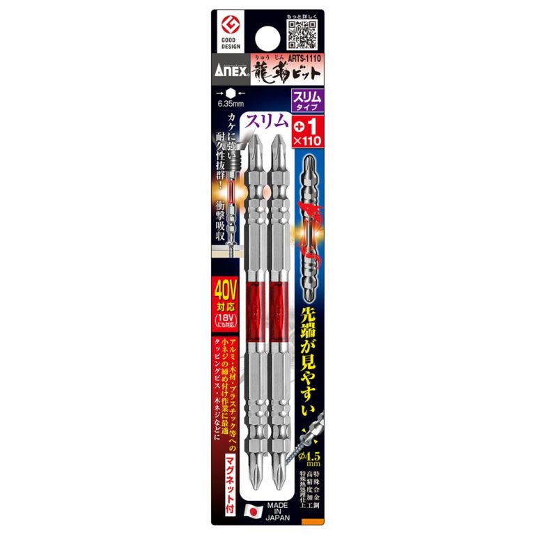 DG162150(+2×150) ●刃先先端にダイヤモンド粒子をコーティング、ネジに食いつく。 ●全身無電解ニッケルメッキでビットをサビから守る。 ●マグネットなしで、鉄紛を嫌うドリルネジ作業に最適 ●サキスボ刃先でネジ頭や打込み箇所が見やすい。ネック部のトーションが着座時の衝撃を吸収。 ●ビット新素材・ダイハード鋼、強さと粘り違う、最高硬度HRC62。