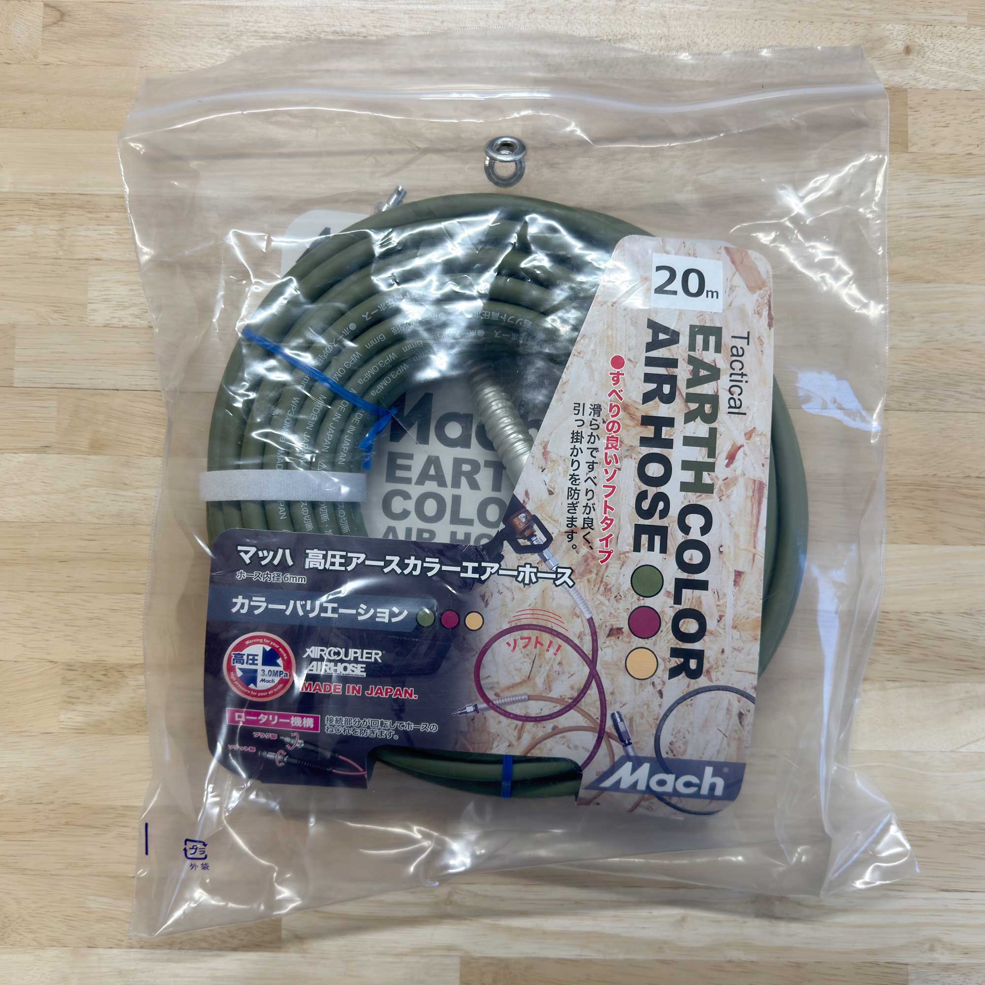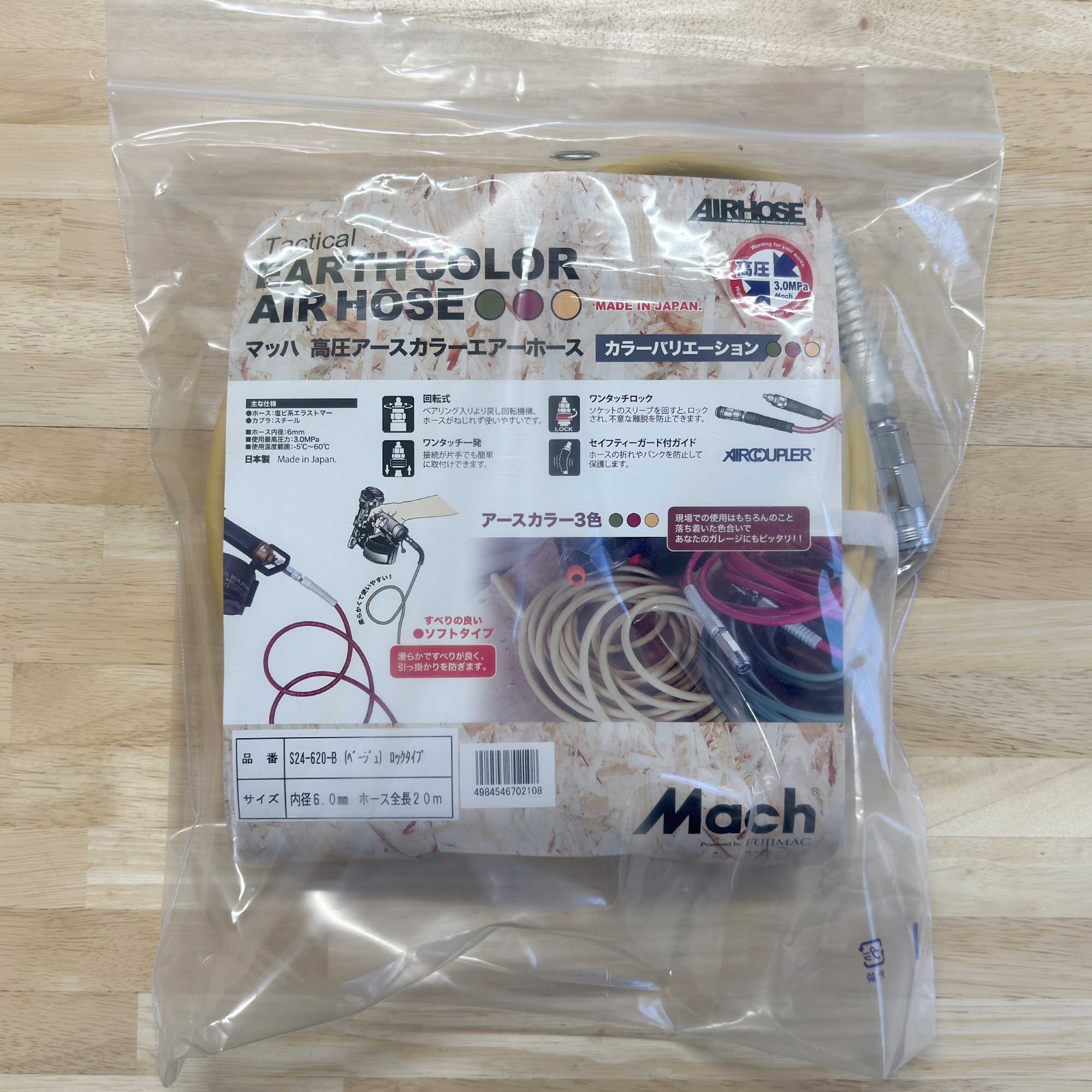 フジマック マッハ S24-620 超ソフト高圧ホース 長さ:20m 高圧専用 エアホース アースカラー EARTH COLOR AIR HOSE