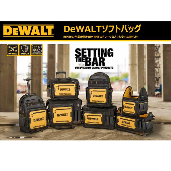 DEWALT×MCLAREN オフィシャルパートナーF1チームとのスペシャルコラボデザイン! 撥水・耐久性に優れ日常からレジャー、アウトドアと幅広く使用できるバックパック 防水防塵(IP54)仕様 最大積載:25Kg、43個のポケットやホルダーによる高い収納力 ツールのほか、ギアやノートPCなども快適に収納 プロフェッショナルだけが選ぶ最高のストレージDeWALT(デウォルト) プロ用ハイパフォーマンス工具箱 DeWALTソフトバッグ 悪天候の作業現場や屋外設置のガレージなどでも安心の耐久性 高い撥水性と撥塵耐久性に優れた1680デニールのポリエステル生地を使用しています。 工具収納はもちろん キャンプサイトの雰囲気作りまでもマッチ サイズ L347×W198×H475 質量 2.5kg
