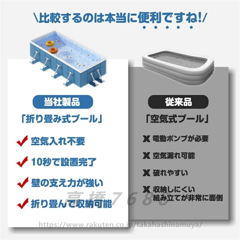 商品説明: 素材: 100% PVC カラー:画像通り セット内容:プール本体*1 【サイズ】 1.5M:外径:150x115x50 cm/内径:96x60x50 cm 適用人数:1-2人 1.8M:外径:180x145x50 cm/内径:120x90x50 cm 適用人数:1-3人 2.1M:外径:210x150x51 cm/内径:150*90x50 cm 適用人数:1-4人 2.6M:外径:260x175x52 cm/内径:210x120x50 cm 適用人数:1-6人 3.25M:外径:325x180x53cm/内径:270x120x50cm 適用人数:1-8人 特徴: 【使いやすさが魅力のプール】:折りたたみプール、組み立て不要、めんどな空気入れする必要がなく、 穴が開いて萎んでしまう心配もございません!わざわざ高価な電動エアーポンプを購入する必要もない! 屋外でも室内でも使える、暑い季節に大活躍!普段使わないときは、折りたたんでコンパクトに収納! 【滑り止め、ペットと子供に安全】: 折りたたみ式プールは、内壁と底の両方に厚い滑り止め素材を備えており、 水を楽しんでいるときに滑りや落下を防ぎます。 子供用プールの側面では、 子供やペットが簡単に飛び越えて水遊びを安全に行うことができます。 【様々な使い方】暑い夏は水遊びを楽しみます。寒い日は、プールにお子様のお気に入りのおもちゃを入れたり、 カラーボールを入れたりして、遊び場になります。お子様が思う存分遊んでいただけます。 自宅や公園など場所でも快適に遊べます 【広範な用途】:屋外プール、バスタブ、おもちゃの箱、1台3役で1年中使える!お子様の水遊び、大きな物を洗う、 ペットバス、おもちゃ入れ、まだまだ多くの用途があります。屋内、お庭、ビーチ、 屋外などいつでもどこでも簡単に使える。 【使用上の注意】: ※必ず保護者同伴のもと、本商品をご利用下さい。 ※対象年齢未満のお子様は使用しないでください。 ※本商品はPVC(ポリ塩化ビニル)を使用しております。材質の特性上、接触?摩擦による他製品への色移り、 または本商品への色移りすることがありますのでご注意ください。 【注意事項】: ※海外製品の為、実寸が多少異なる商品も御座います。 1、PC環境?光の具合により、色や素材のイメージが写真と若干異なる場合がございます。 2、商品写真はできる限り実物の色に近づけるよう加工しておりますが、 お客様のお使いのモニター設定、お部屋の照明等により実際の商品と色味が異なる場合がございます。 3、商品の仕様は改良等のため予告なく変更する場合があります。 また本サイトの写真とお届け商品の色合いが多少異なる場合や、制作の都合上、 柄などの出方が写真と異なる場合がございますので、ご了承下さい。