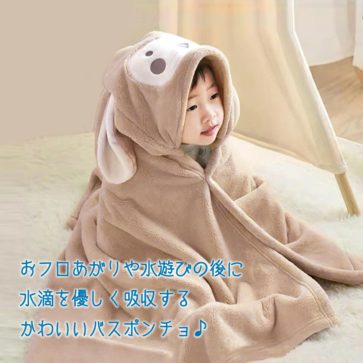 \楽天ランキング 1位獲得/ バスタオル フード付き ポンチョ 子供 キッズ ベビー 女の子 男の子 吸水 速乾 湯上り バスローブ 着るバスタオル bath-poncho